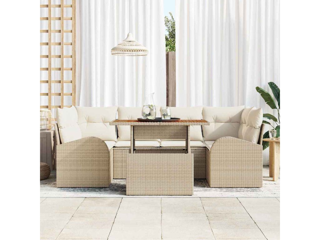 - Odolný poly ratanový materiál v krásné béžové a krémové barvě je voděodolný a vyrobený tak, aby odolal povětrnostním podmínkám pro dlouhodobé venkovní použití.