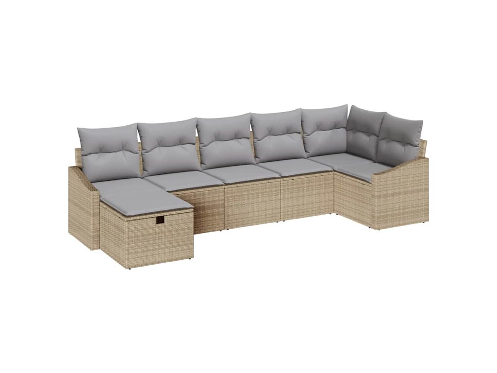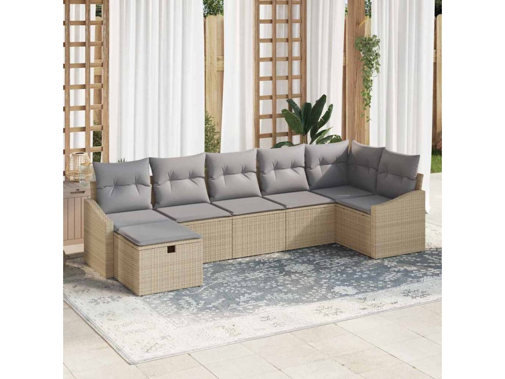 Tento set venkovních pohovek je skvělým centrem pro vaši terasu, balkon nebo zahradu, spojující eleganci a praktičnost. Moderní obdélníkový tvar se ratanovou texturou v přirozené béžové a šedé barvě spolu s pohodlnými polštáři usnadní odpočinek, ideální pro společenské akce nebo klidné večery.
