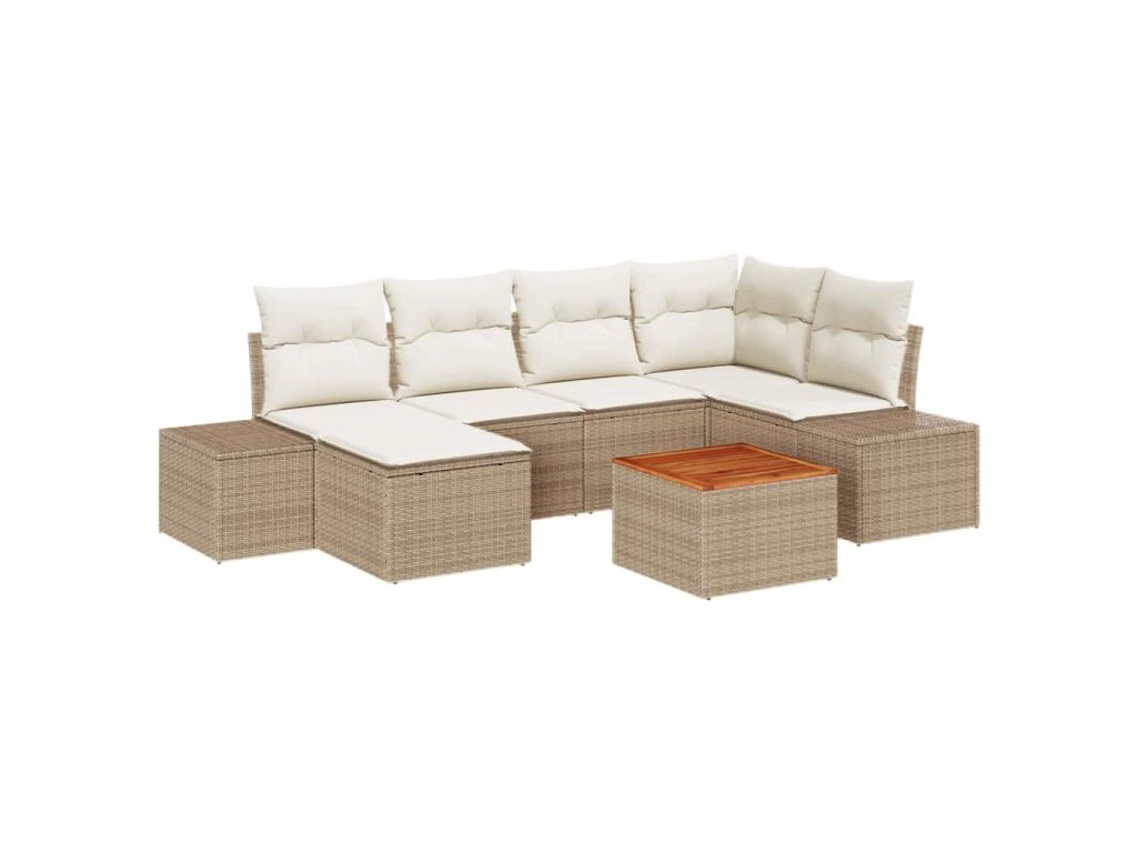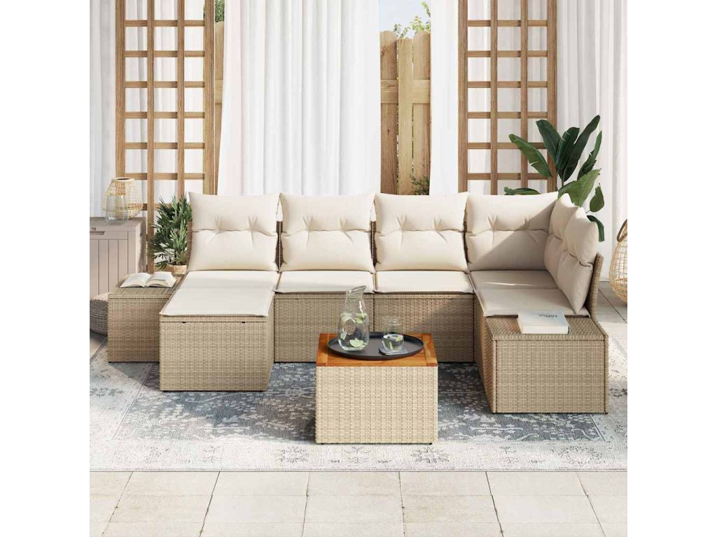 - Obsahuje: Tato komplexní sada zahrnuje dvě centrální sedačky, jedno rohové sedadlo, dvě další pohovky, podnožku a zahradní stol. Každý kousek je navržen tak, aby se snadno spojoval nebo přeskupoval, což nabízí flexibilitu ve vašem uspořádání zahrady.