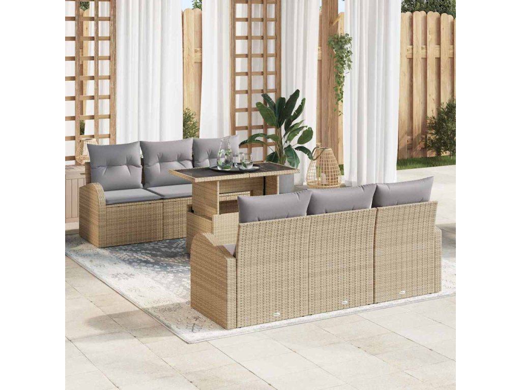 Tento zahradní pohovkový set vám přináší skvělou kombinaci stylu, pohodlí a versatility do vašeho venkovního prostoru. Je navržený pro zahrady a terasy a pohodlně se do něj vejde 7 lidí, což ho dělá ideálním pro velké akce. Jeho moderní obdélníkový tvar a tkaný design skvěle ladí s moderními venkovními prostory. Práškový nátěr dodává extra šmrnc a promění jakýkoli balkon, terasu nebo patio v útulné místo.
