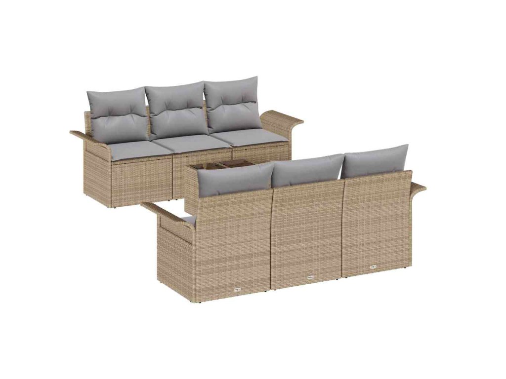 Tato sada zahradní pohovky je určena pro relaxaci a jídlo venku. Přináší stylový dotek na tvůj balkon nebo terasu. Trendy kombinace béžové a šedé barvy a měkká tkanina zajišťují pohodlí, ideální pro chillování s rodinou a přáteli.