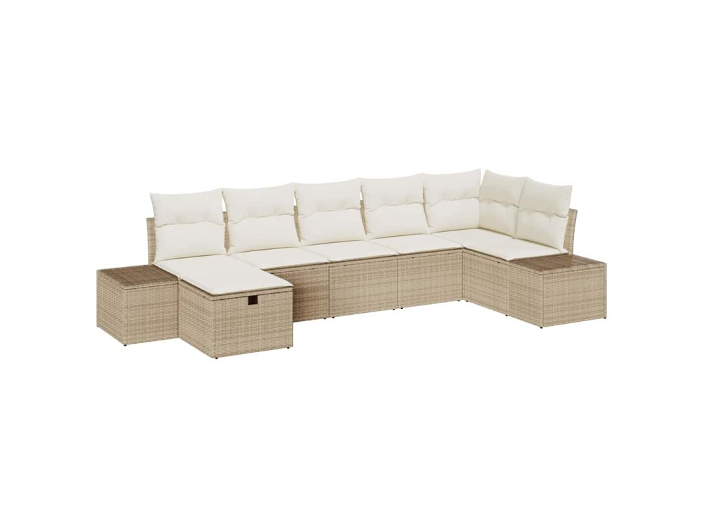 Tato venkovní pohovková sada je stylová a praktická pro terasy nebo zahrady. S jejím elegantním béžovým poly ratanovým provedením a měkkými krémovými polštáři dodává příjemnou atmosféru do každé venkovní oblasti, a přitom klade důraz na pohodlí a odolnost.