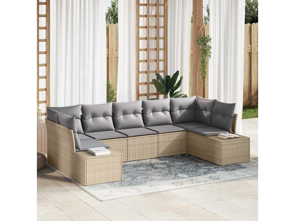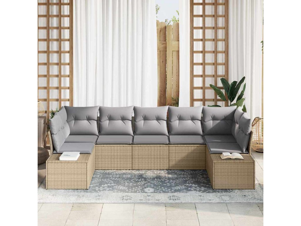 Tento venkovní rohový pohovkový set je navržen s důrazem na pohodlí a praktičnost. Je perfektní pro setkání s přáteli a rodinou venku. Díky modernímu vzhledu z béžového polyratanu a šedých polštářů dodává terasám a balkonům šmrnc.
