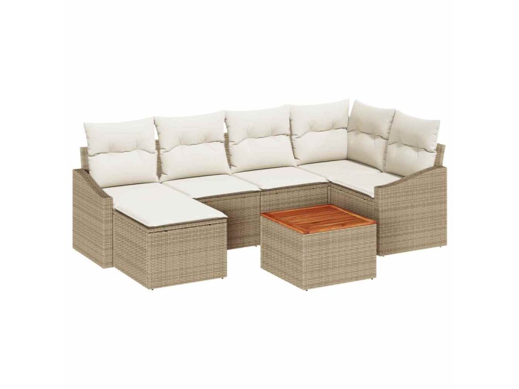 - Součástí sady: Obsahuje sedm kusů, včetně rohové pohovky, stolu a polštářů, které nabízejí dostatek místa na pokec s přáteli a rodinou, ideální pro zábavu nebo jen tak k odpočinku.