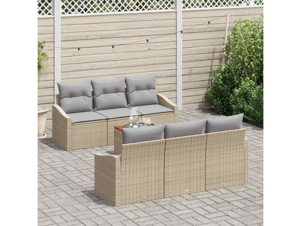 - Odolná konstrukce z poly ratanu V této zahradní sedací soupravě se poly ratan efektivně používá pro svou odolnost vůči drsným povětrnostním podmínkám, čímž si udržuje estetiku a funkčnost soupravy v průběhu času. Tento materiál nejen poskytuje potřebnou pevnost pro venkovní použití, ale také si v každém ročním období zachovává své kouzlo.