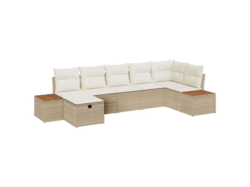 - Materiály: Tento modulární zahradní set je vyrobený z kvalitního poly ratanu, který je lehký a odolný. Spojení s masivním akáciovým dřevem dodává přírodní eleganci a zajišťuje trvanlivost na celý rok.
