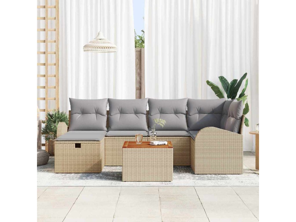 Tento zahradní rohový sofa set je skvělé doplnění tvého venkovního prostoru, spojuje styl a funkčnost. Je vyroben z odolného poly ratanu a pohledu na pohodlné polštáře v béžové a šedé, ideální na terasy nebo lounge a nabízí dostatek místa pro tvé kámoše.