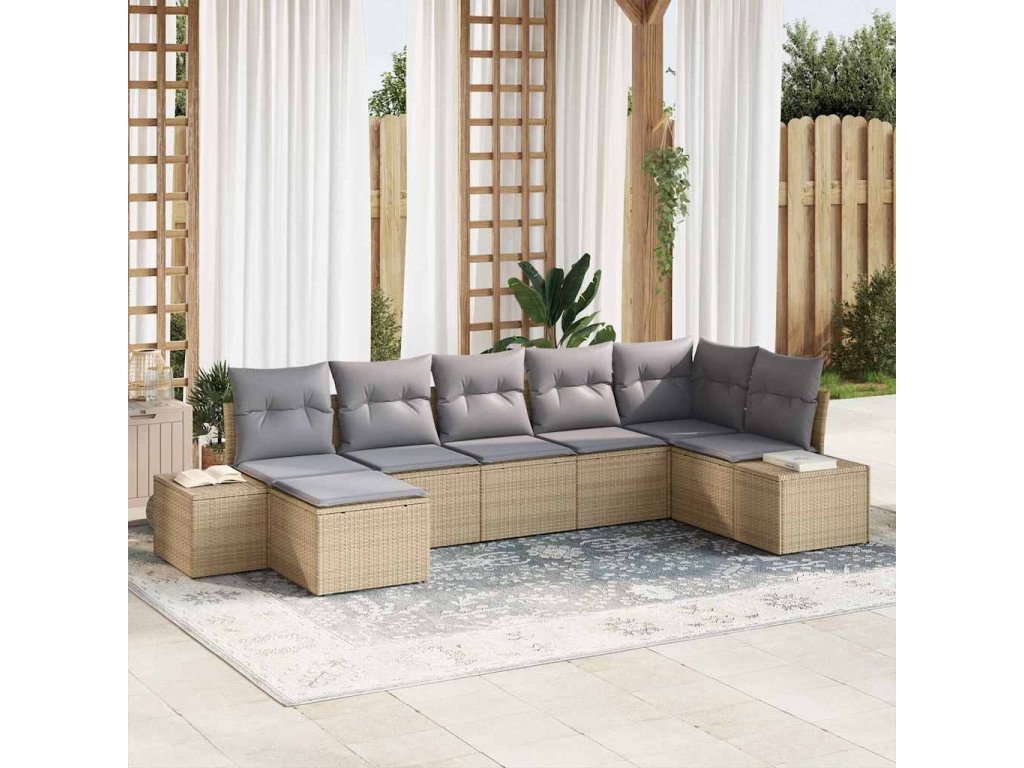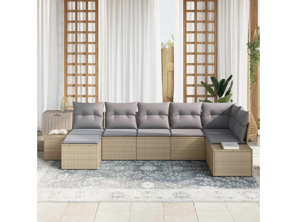 Tato venkovní sofa sada je ideální pro oživení tvé zahrady, balkonu nebo terasy s trendy vzhledem a užitečnými funkcemi. Oblékli jsme ji do příjemné béžové a šedé kombinace, která ti poskytne spoustu pohodlného sezení — ideální na setkání, odpočinek nebo rodinnou zábavu, ať už venku nebo vevnitř.