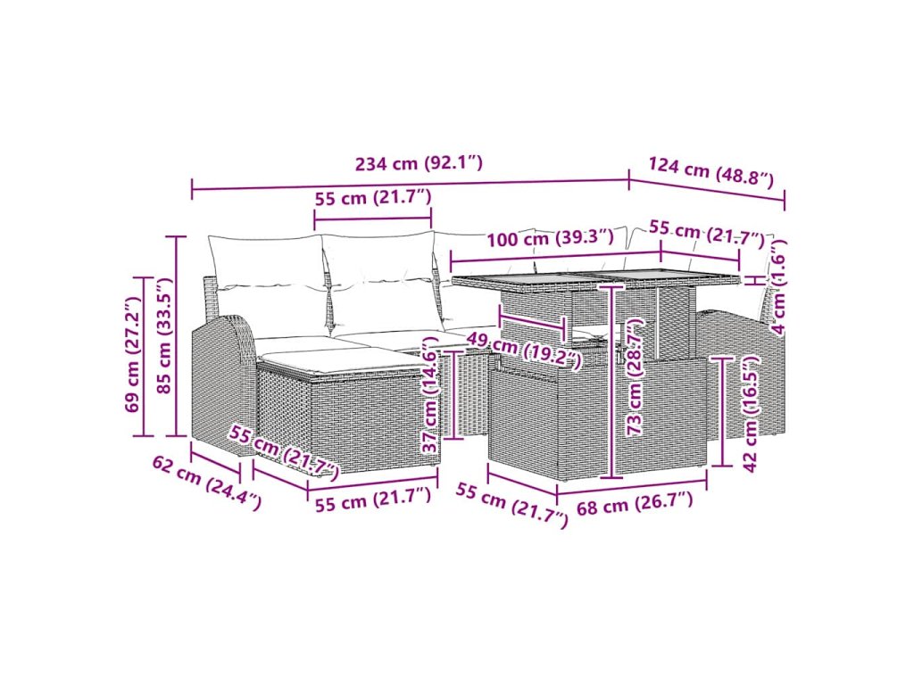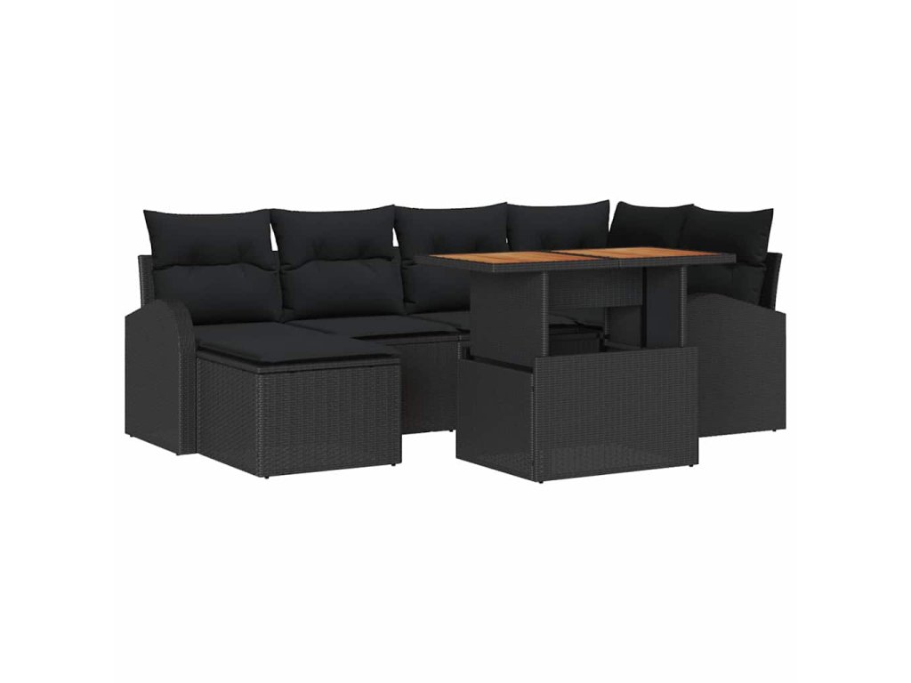 - Dodávka obsahuje: 2 x křeslo s úložným prostorem, 1 x rohové sedadlo s úložným prostorem, 2 x střední sedadlo s úložným prostorem, 1 x podnožka s úložným prostorem, 1 x zahradní stůl