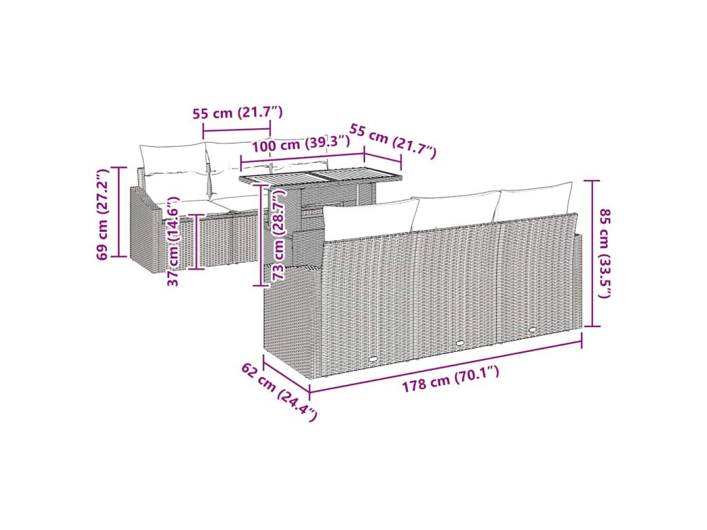 - Dodávka obsahuje: 4 x Arm sofa s úložnou funkcí, 2 x Střední sedadlo s úložnou funkcí, 1 x Zahradní stůl