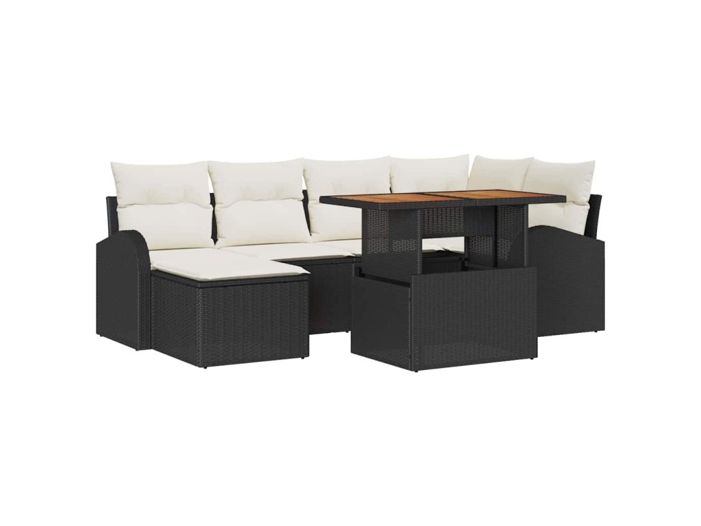 - Dodávka obsahuje: 2 x pohovka s úložným prostorem, 1 x rohové sedadlo s úložným prostorem, 2 x centrální sedadlo s úložným prostorem, 1 x podnožka s úložným prostorem, 1 x zahradní stůl
