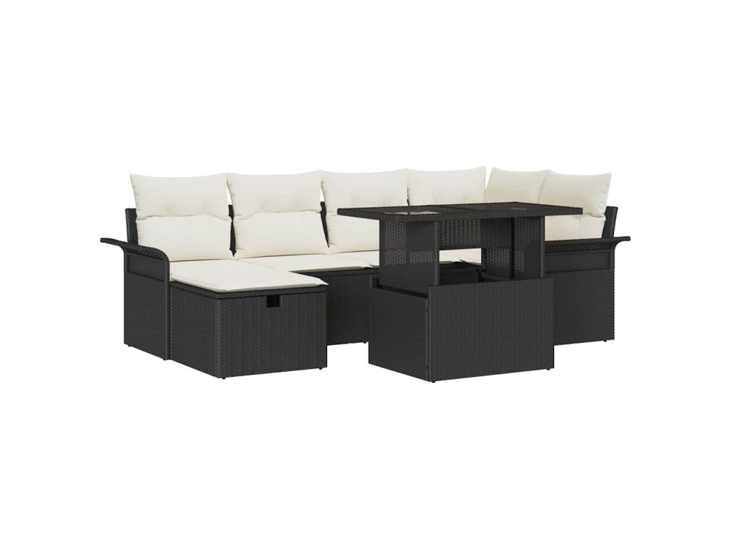 Tato 7dílná sada zahradního gauče spojuje pohodlí a funkčnost, připravena oživit tvé vnitřní a vnější prostory. Má moderní styl a je skvělá pro rodinu a přátele. Přidává tvému balkonu, zimní zahradě nebo zahradě svěží vzhled, zatímco pohodlně pojme šest lidí. Stylový ratan a měkké polštáře vytvářejí příjemný prostor, ideální pro relaxaci nebo společná setkání.