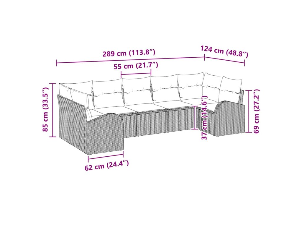 - Celkové rozměry: 289 x 124 x 85 cm (Š x H x V)