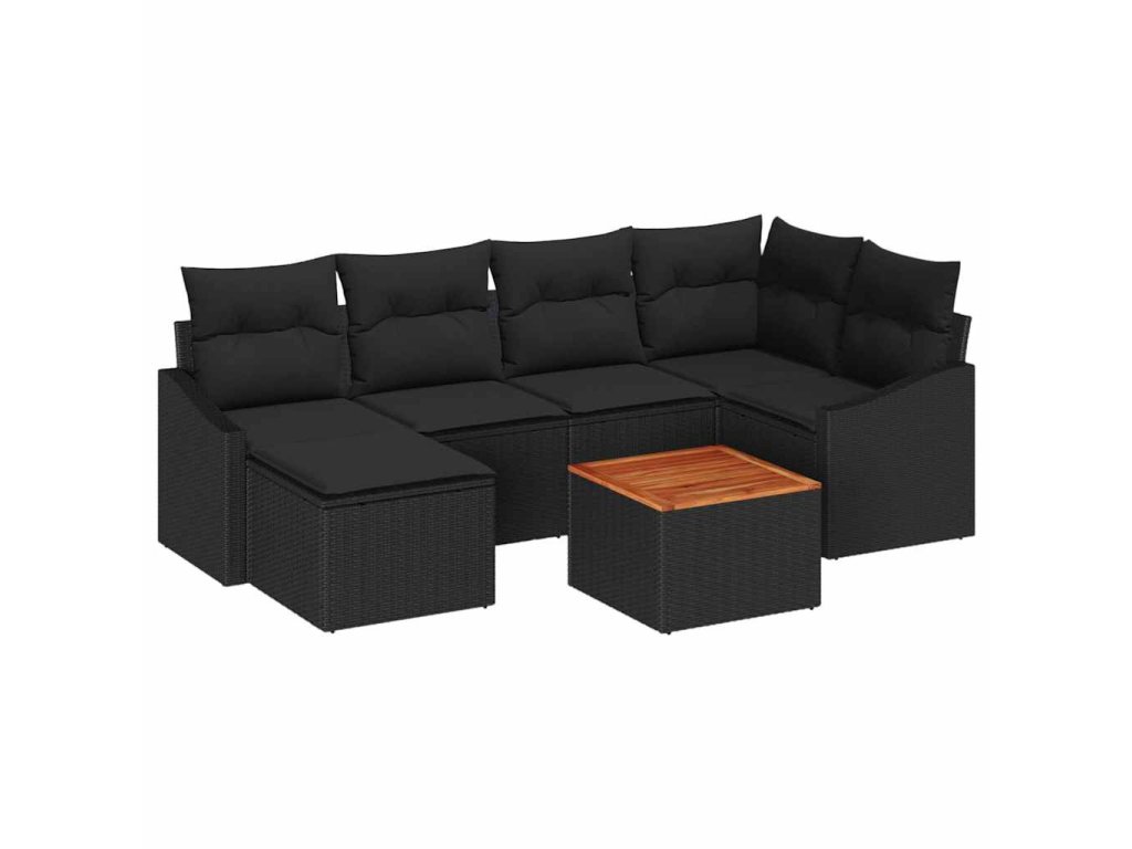 - Kompletní set: Obsahuje sedm kousků, včetně rohové pohovky, stolu a polštářů, což poskytuje spoustu místa pro setkání s přáteli a rodinou – ideální pro zábavu nebo jen tak ke relaxaci.