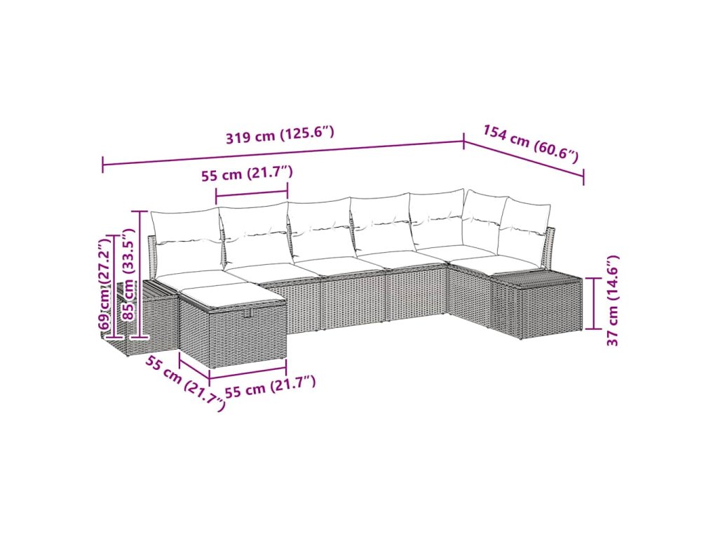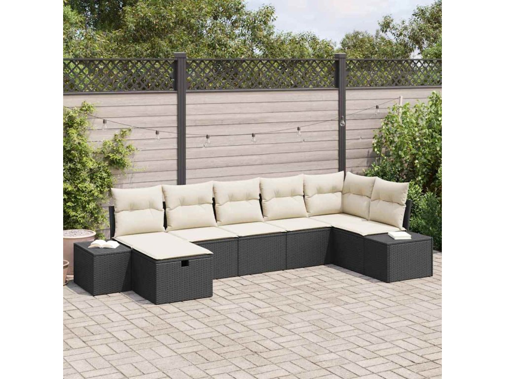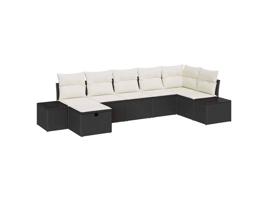 Tato venkovní sekční pohovka spojuje styl s praktičností, ideální pro terasy nebo zahrady. Elegantní černý poly ratan a měkké krémové polštáře působí příjemně a vítajícím dojmem. Je pohodlná a navrhnutá, aby vydržela.