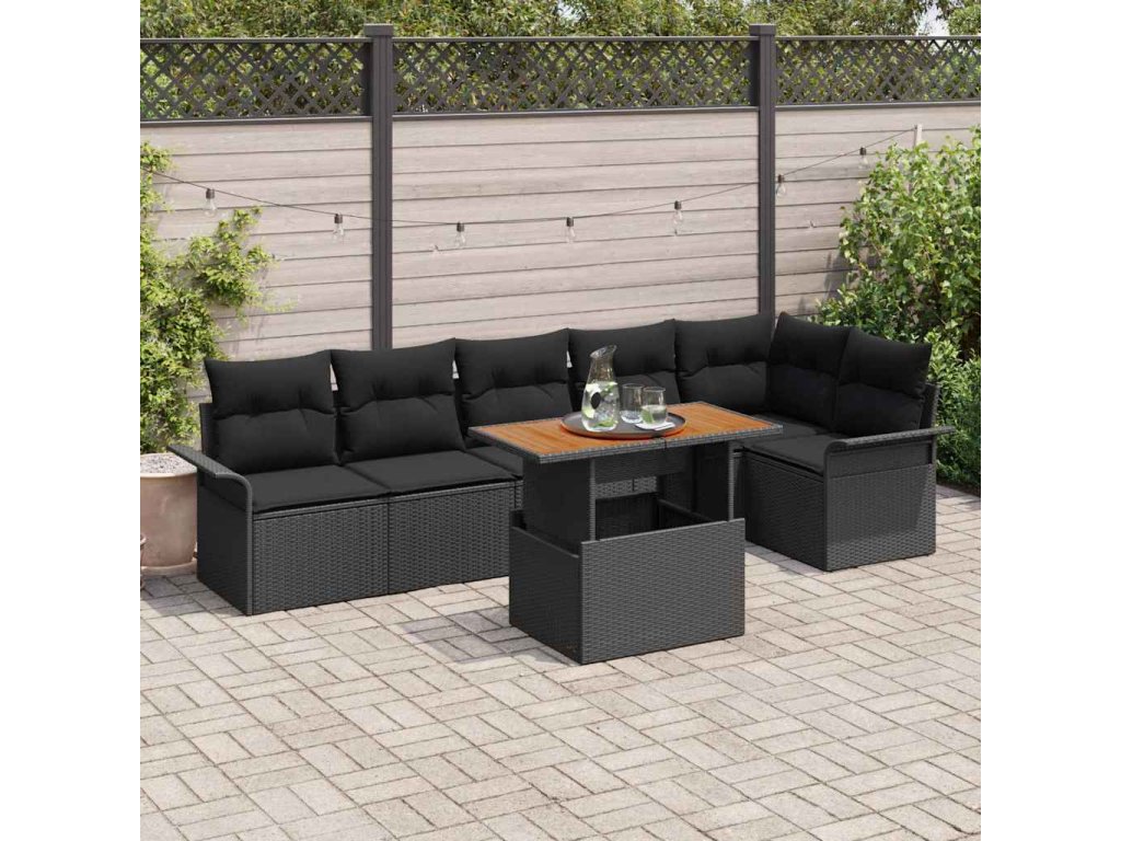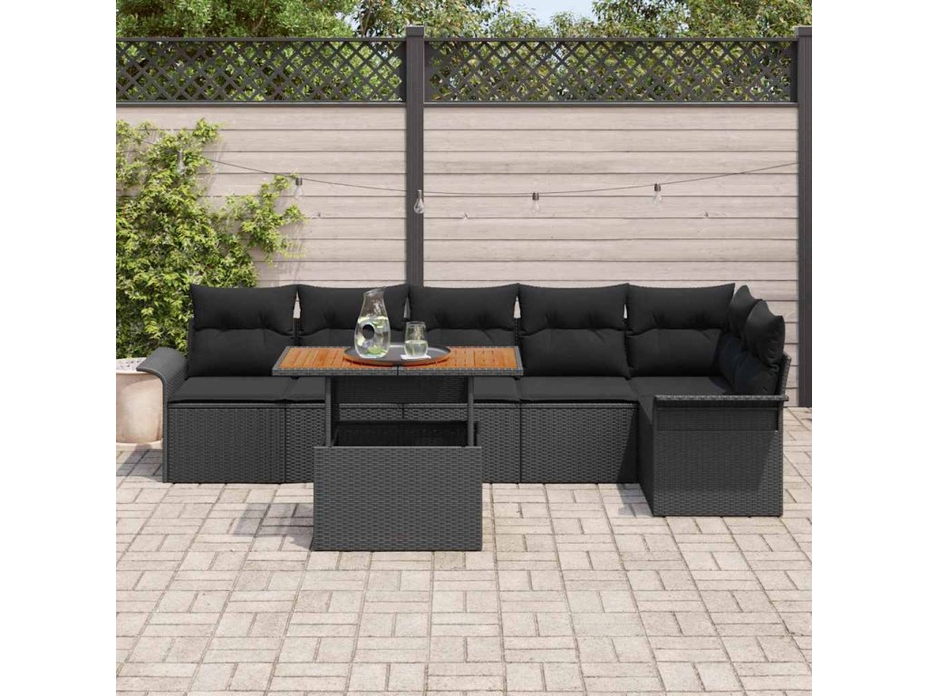 Tato zahradní jídelní souprava je stvořená pro venkovní zábavu, s lesklým černým povrchem z polyethylenového ratanu a pohodlnými polstry. Skvěle se hodí na setkání, promění vaši terasu nebo zahradu na skvělé místo pro neurvalé rodinné večeře nebo zábavné párty s přáteli.