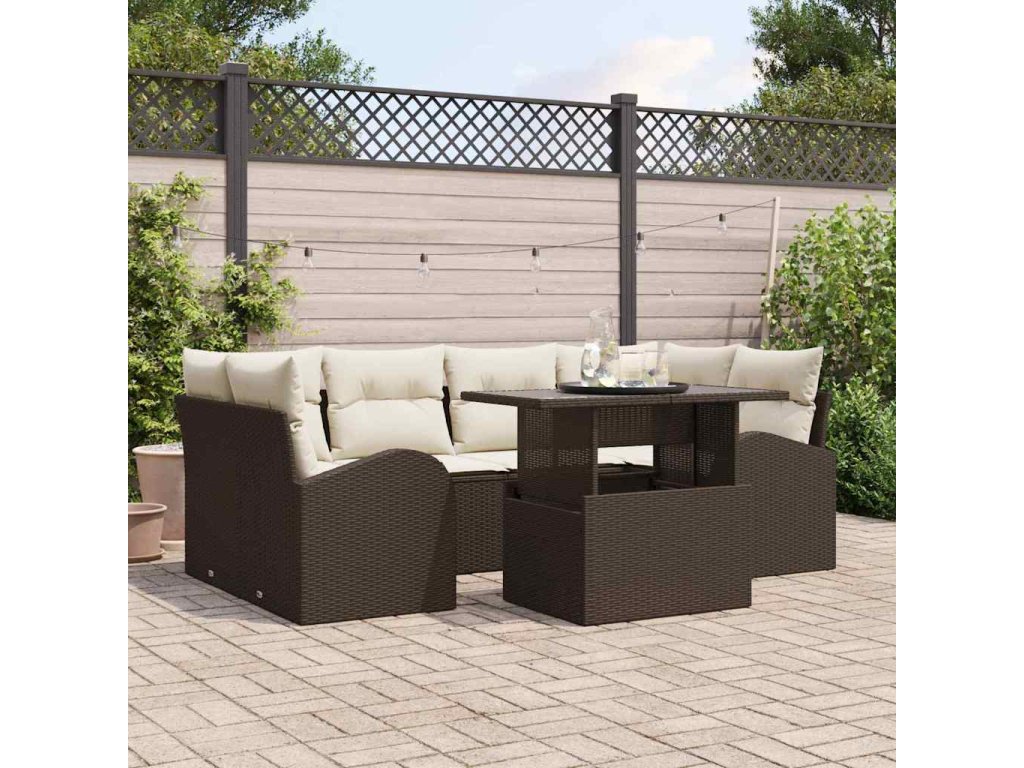 - Materiály: Hlavně z odolného poly ratanu, tahle souprava je odolná proti blednutí a UV záření, perfektní na venkovní používání, aniž by ztratila šarm. Tkaný vzhled jí dodává stylovost a zároveň pevnost, což kombinuje estetiku s dlouhou životností.