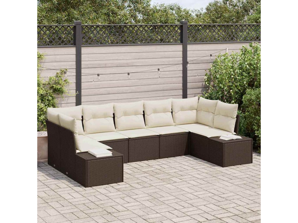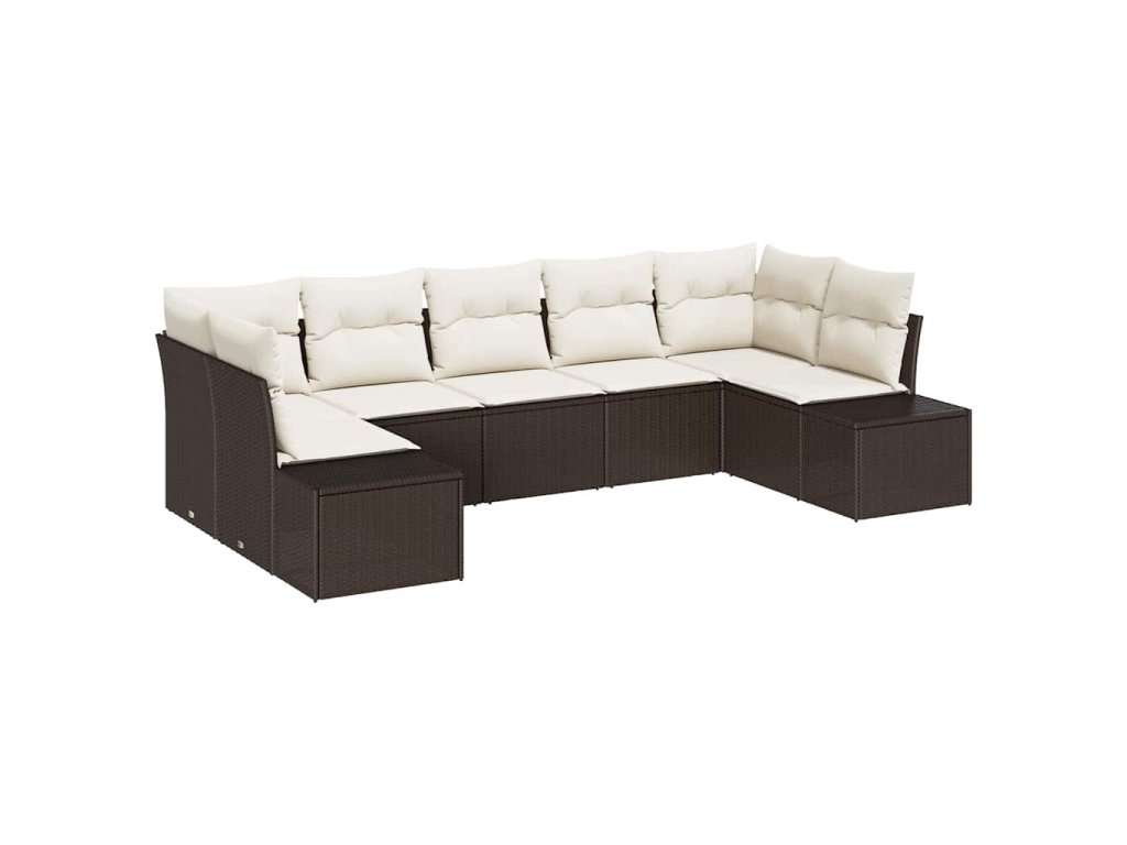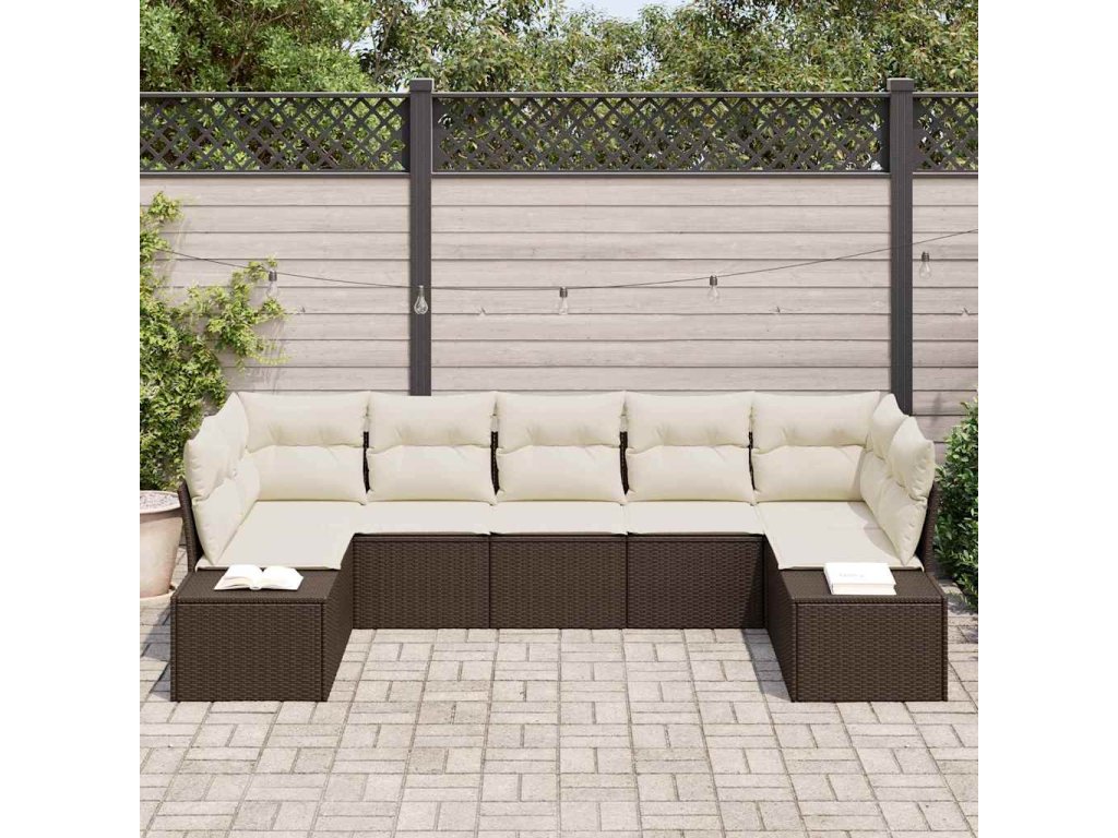 Tato venkovní sekční pohovka je navržená na pohodlí a praktičnost, ideální pro setkání s přáteli a rodinou na venkovních akcích. Elegantní moderní design z hnědého poly ratanu a krémových polštářů dodá stylový nádech jakékoli terase nebo balkónu.