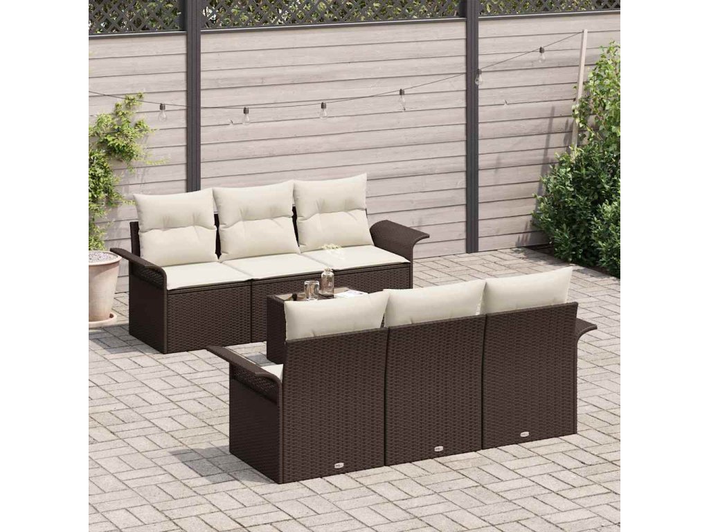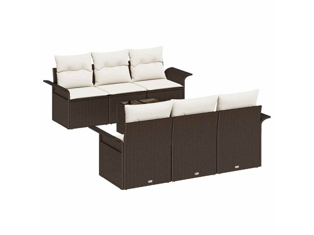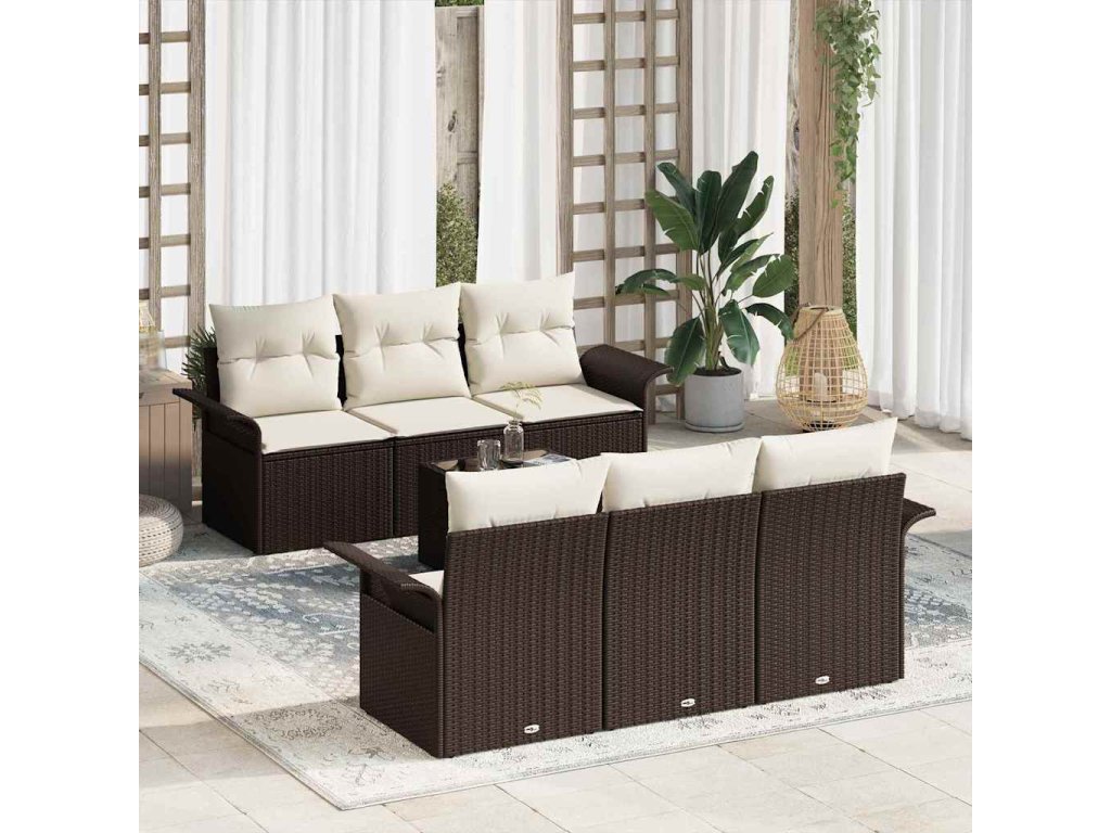 Tato sada zahradních pohovek je super pro venkovní lenošení a stolování. Má moderní vzhled, který sedí na jakýkoliv balkon nebo terasu. Krásná kombinace hnědé a krémové barvy a hladký povrch vytváří pohodlné a stylové místo pro relaxaci a povídání s rodinou a kamarády.
