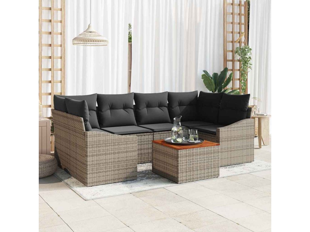 - Kompletní set: Obsahuje dvě středová sedačky, dvě rohové, dvě arm sofa a jeden zahradní stůl, takže si sezení uspořádáš podle sebe. Tento modulární design je ideální jak pro malé posezení, tak větší akce.