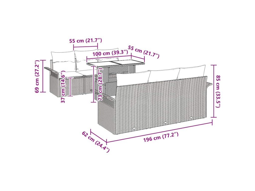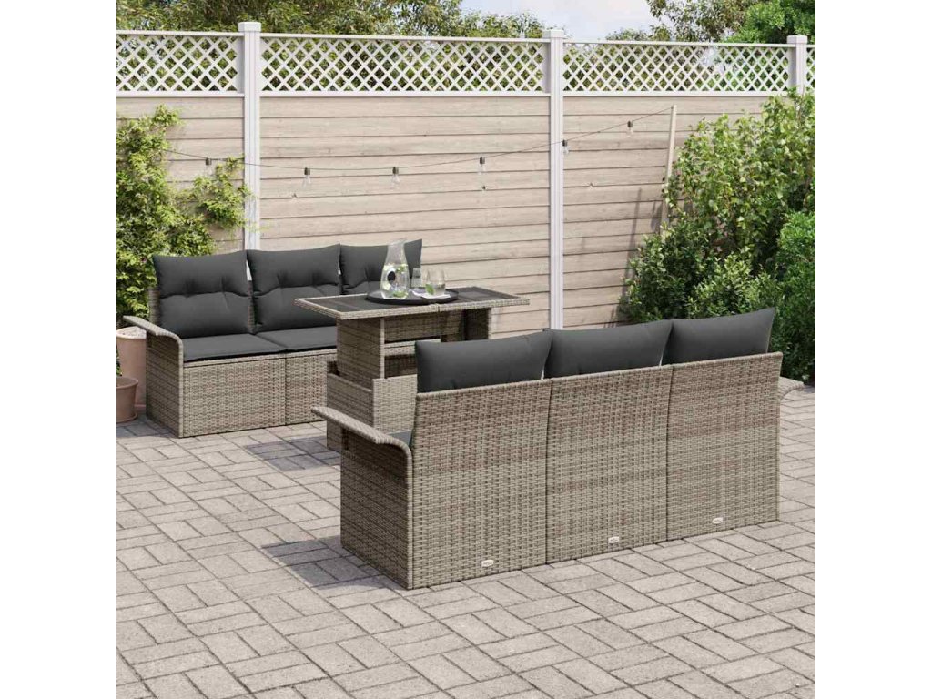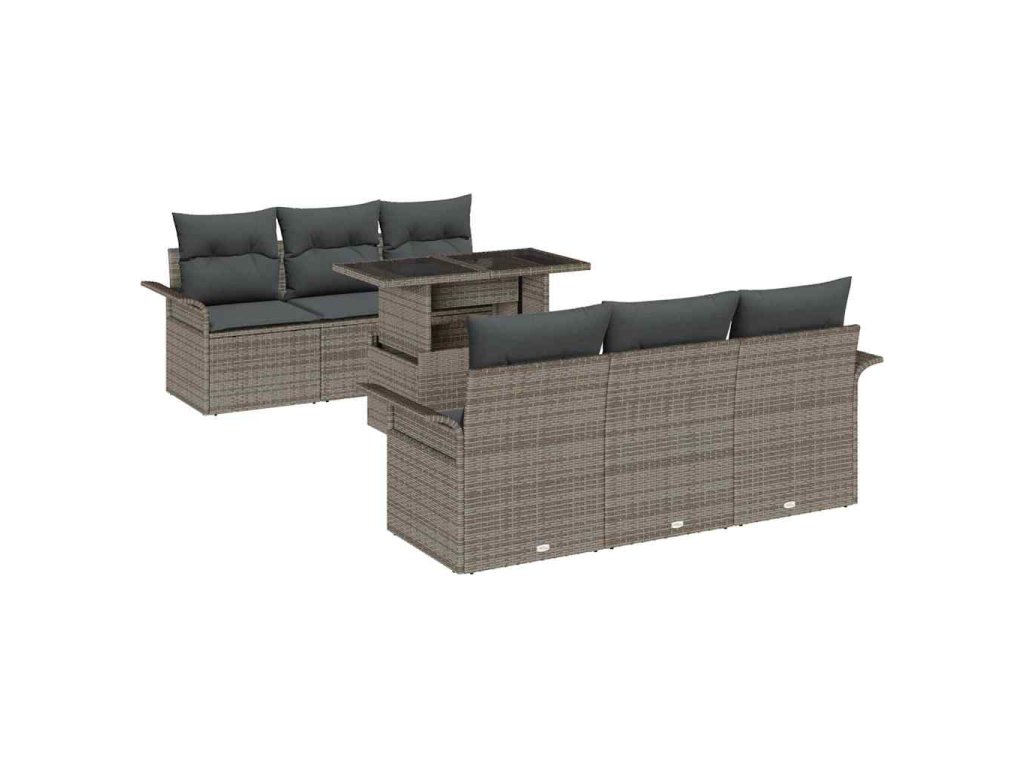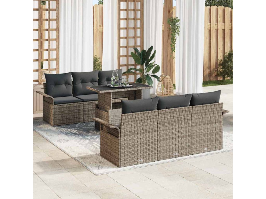 - Kompletní uspořádání sedačky: Ideální kombinace 2 centrálních sedadel, 4 křesel a rozkládacího stolu nabízí spoustu místa pro sezení a povídání.
