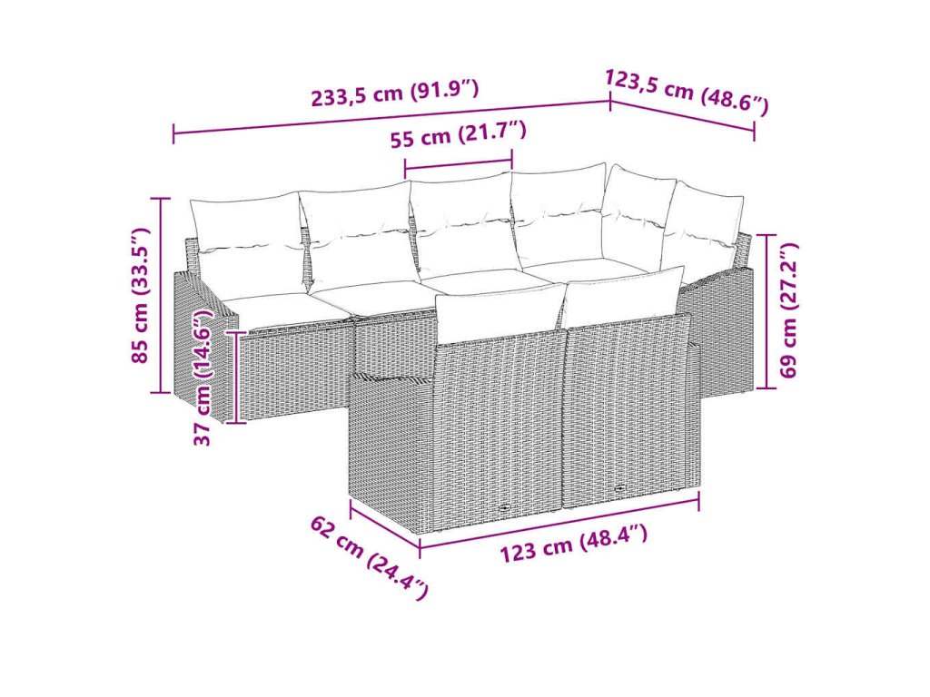 - Dodávka obsahuje: 1 x rohové sedadlo, 2 x středové sedadlo, 4 x pohovku s opěrkou