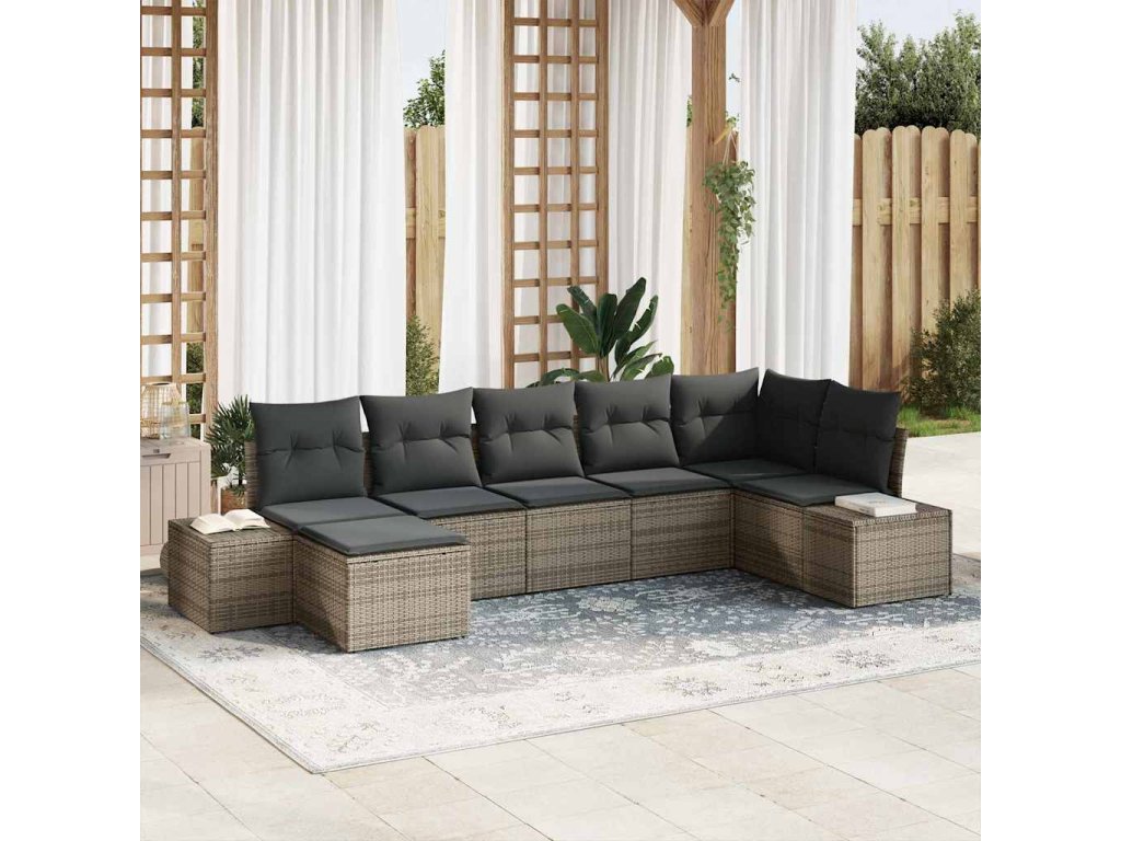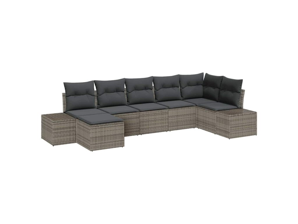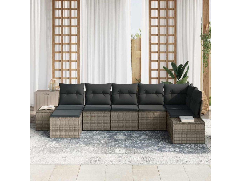 Udělej si svou venkovní oblast skvostnou s touto pohodlnou 7 kusovou zahradní pohovkovou sadou. Spojuje moderní styl s praktičností. S trendy šedou a černou barvou je ideální pro lenošení na tvém balkoně nebo terase během slunečných letních dní. Nabízí pohodlné místo pro relaxaci nebo zábavu.