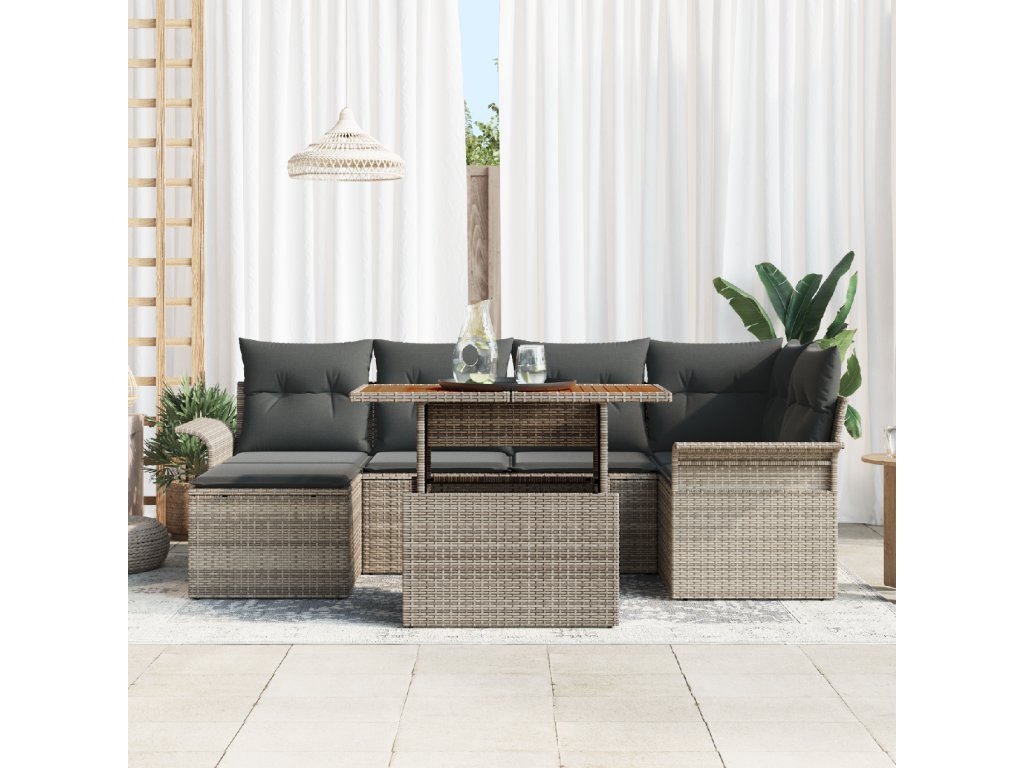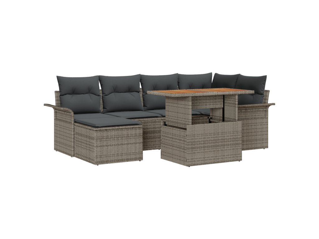 Tahle nádherná 7-dílná zahradní souprava je přesně to, co potřebujete pro venkovní jídlo a relaxaci. Má trendy styl, který skvěle ladí s jakoukoli venkovní dekorací. Ideální na balkony nebo terasy, chic šedé a hnědé barvy se krásně doplňují s přírodou, zvou vás k užívání si jídel pod sluncem nebo pokojných večerů venku.