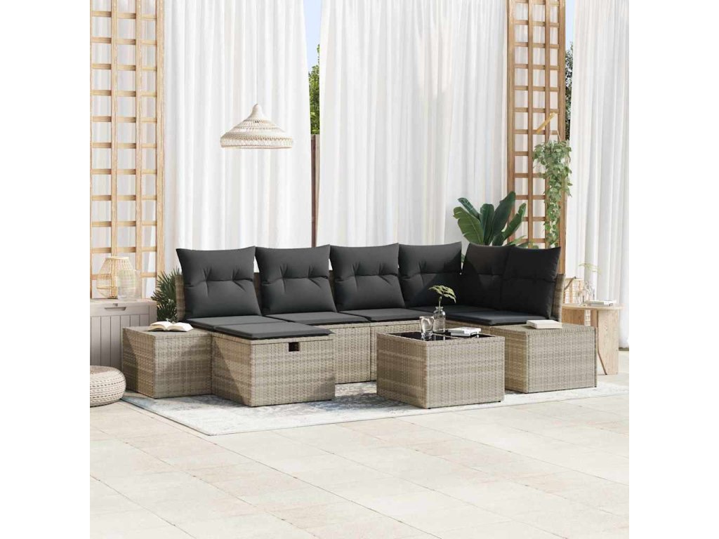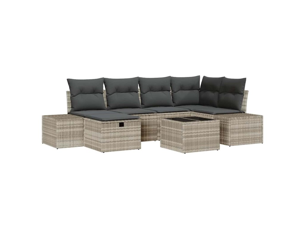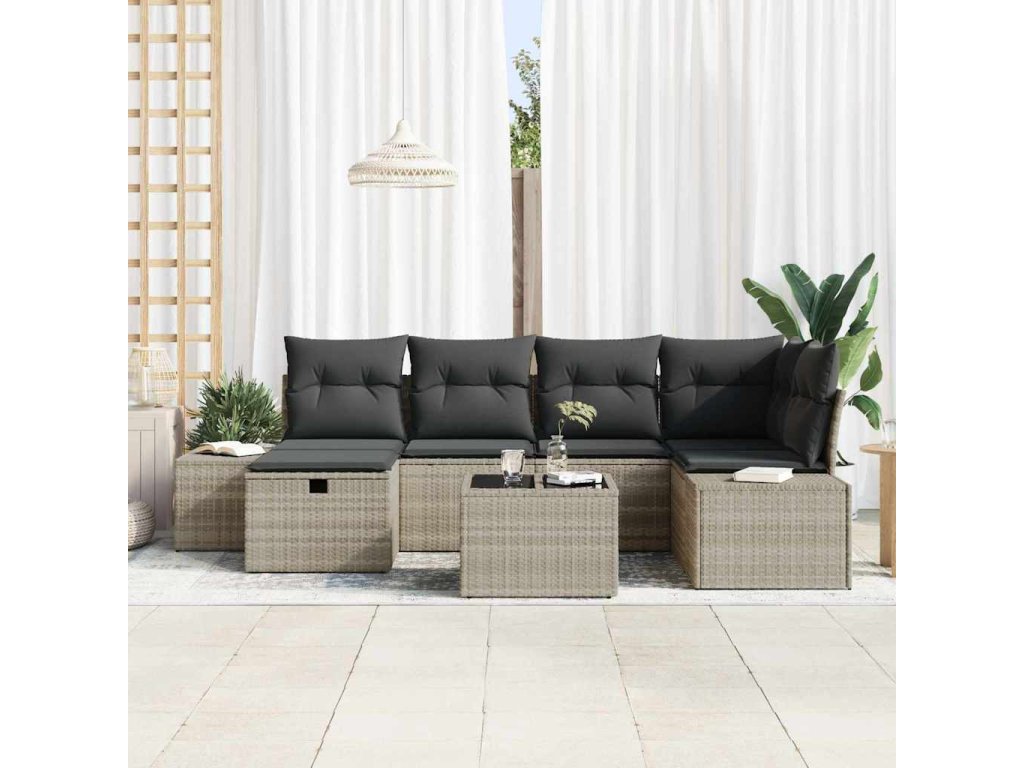 Tato zahradní rohová pohovka je super doplněk do tvého venkovního prostoru. Pohodlně se vejde až šest lidí, ideální na setkání nebo relaxování na sluníčku. Díky modernímu světle šedému designu se hodí na balkony, terasy nebo zahrady.