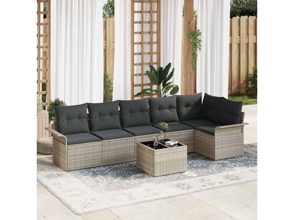 Tento set zahradních pohovek je skvělou volbou na venkovní sezení na balkoně, v zahradě nebo na terase. Spojuje moderní vzhled s praktickým využitím a dává vám relaxační prostor pro rodinné chvilky nebo klidné chvíle. Tkaná textura a poly ratanová konstrukce nabízejí stylový a odolný vzhled, který vytváří pohodovou atmosféru při odpočinku, zábavě nebo vystavování se slunci.