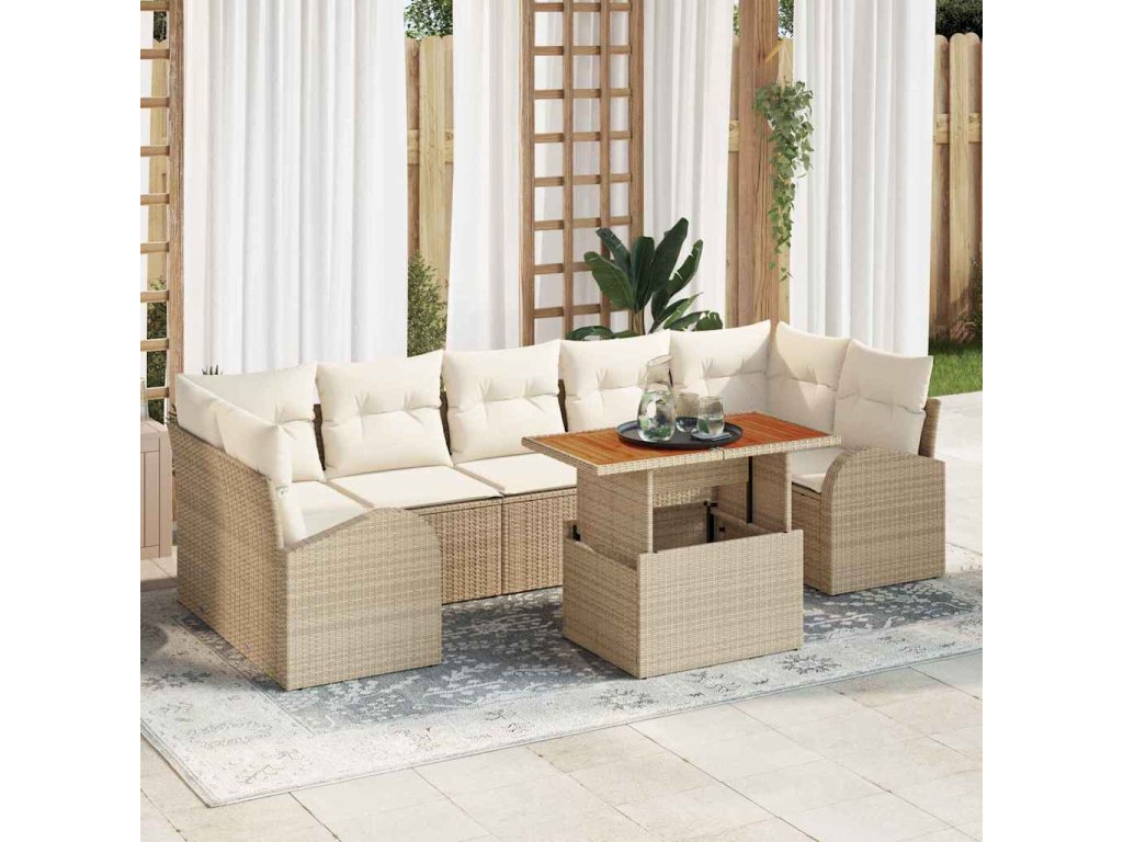 Tato 8dílná zahradní jídelní sada je tu, aby tvůj čas venku byl co nejlepší. S pohodlnými sedadly a moderním stylem můžeš upravit uspořádání podle potřeby, ideální pro čtyři, ať už na klidné setkání nebo odpoledne lenošení na slunci.