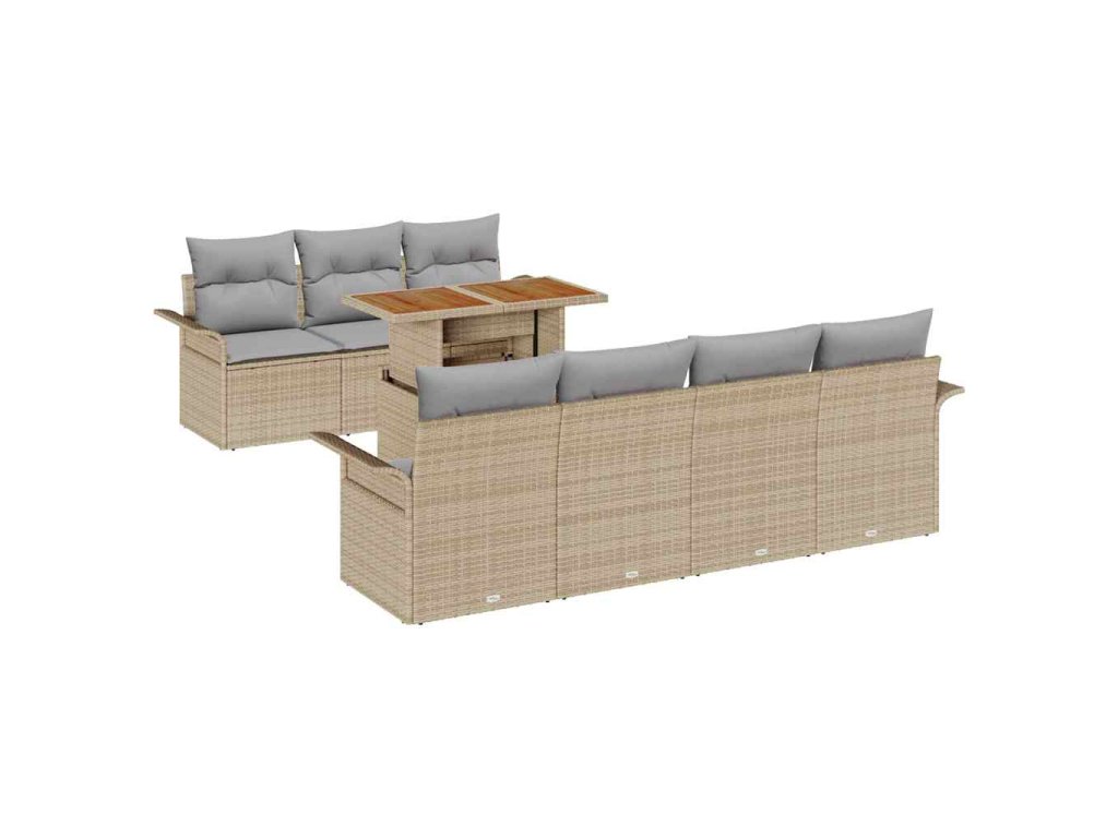 - Zahrnuté komponenty: Tento komplexní set obsahuje čtyři pohovky s područkami a úložným prostorem, tři středové sedadla také s úložným prostorem a jeden zahradní stůl. Každá komponenta je navržena tak, aby zvyšovala použitelnost a komfort, což vám umožňuje přizpůsobit a uspořádat váš prostor podle potřeby.