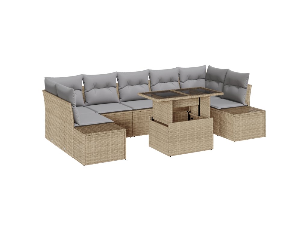 Tento 8-dílný zahradní sofa set spojuje eleganci a pohodlí, čímž vytváří skvělý venkovní prostor pro trávení času. Jeho moderní design v béžové a šedé barvě ozdobí vaši terasu nebo balkon a je ideální pro odpočinek nebo příjemné povídání s rodinou a přáteli.