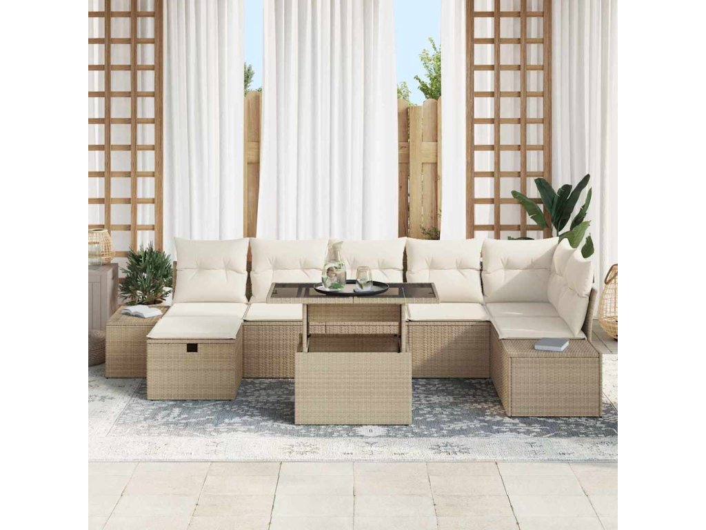 - Jedinečné funkce: Set je navržen s uložnými prostory v lavicích, takže můžeš ukládat polštáře nebo deky a mít je po ruce, ale mimo dohled. UV-odolné materiály zabraňují opotřebení a pomáhají udržet vzhled. Čelí jak estetice, tak i praktičnosti, takže si vždy užiješ pohodu.