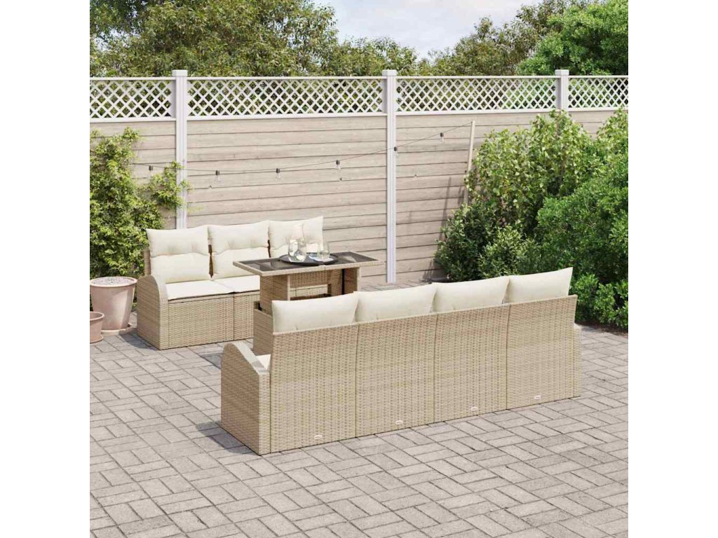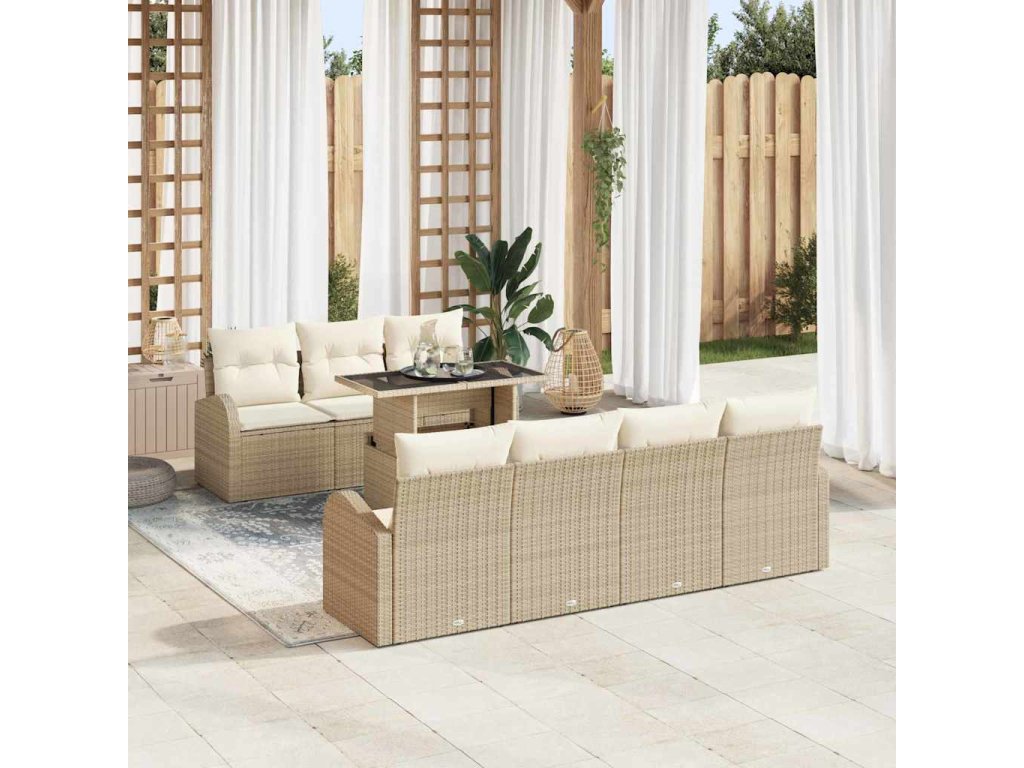 Tato zahradní sofa sada je zaměřená na styl a funkčnost, což ji dělá skvělou pro oživení venkovních míst jako terasy, balkony nebo zahrady. S osmi kusy přináší moderní a stylový vzhled s důrazem na pohodlí, vytvářejícím skvělé místo k relaxaci nebo hostování přátel.