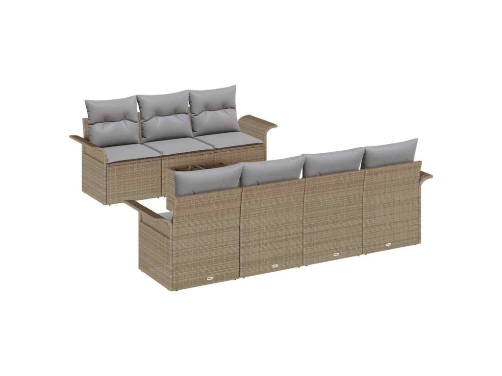 Tato zahradní souprava přidá moderní styl a dostatek místa k sezení do tvých venkovních prostor. Vyrobená z béžového a šedého poly ratanu s pohodlnými polštáři, je perfektní pro setkání, odpočinek a zábavu.