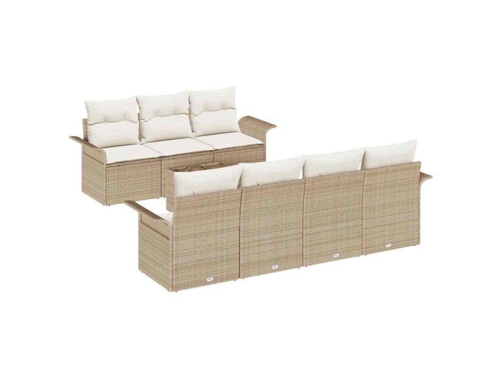 Tento zahradní sofa set modernizuje tvůj venkovní prostor s velkým množstvím sezení. Je vyroben z poly ratanu a pohodlných béžových a krémových polštářů, ideální pro relaxaci a trávení času s přáteli nebo rodinou.