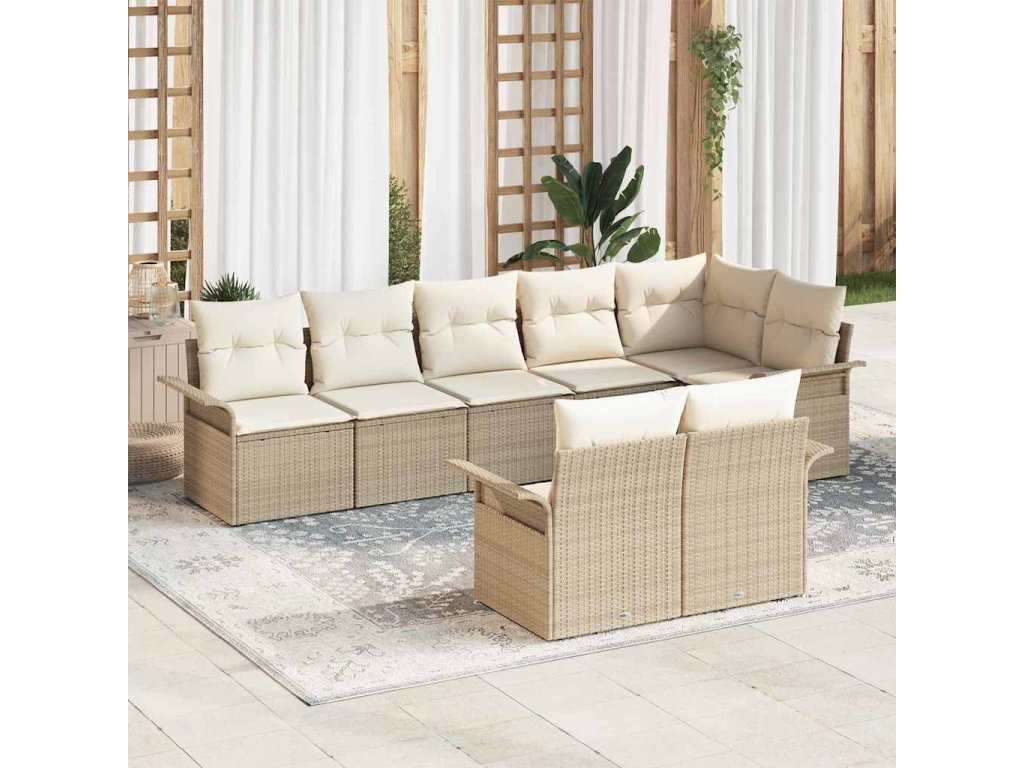 - Součásti: Každý kus setu má pohodlné polyesterové polštáře se zipy pro snadné čištění. Poly ratanové opěrky dobře drží a šikmé opěrky rukou navyšují pohodlí. Tyto detaily spojují styl a funkčnost.