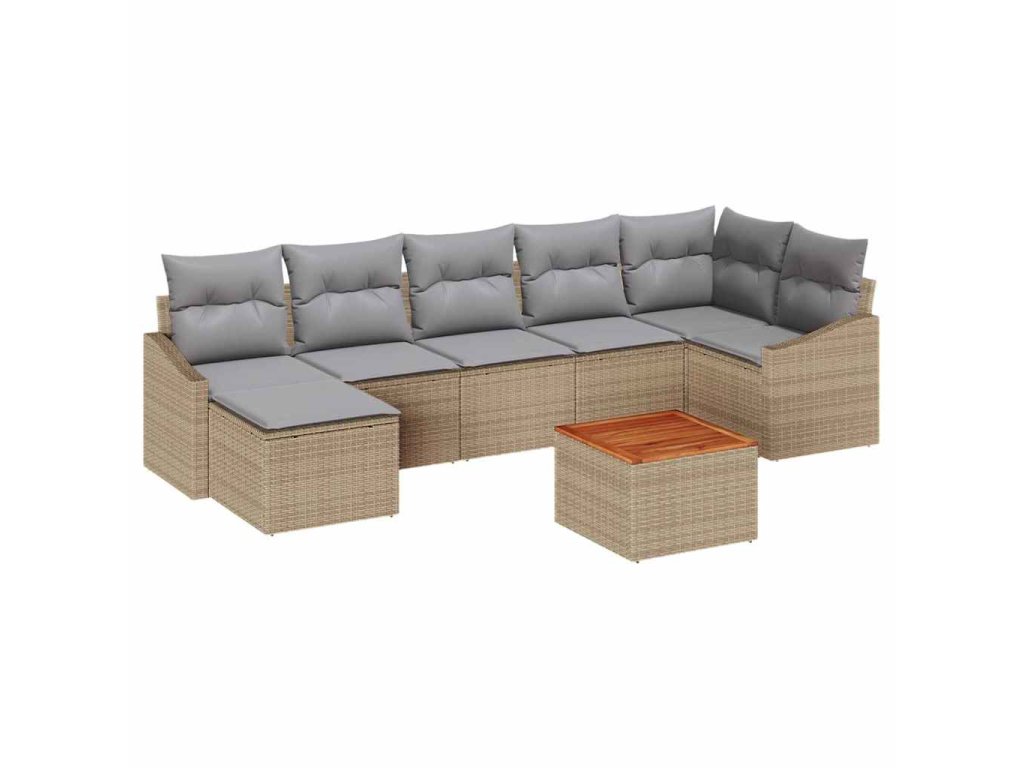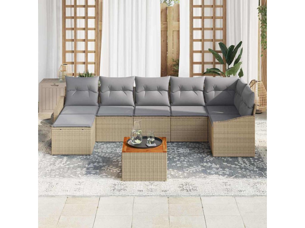 - Kompletní komponenty Tento set obsahuje různé možnosti sezení, od středových a rohových kusů po konfigurace s opěradly. Doplněný o podnožku pro zvýšené pohodlí a zahradní stůl, tyto komponenty vytvářejí plně funkční a stylový venkovní prostor pro setkání.