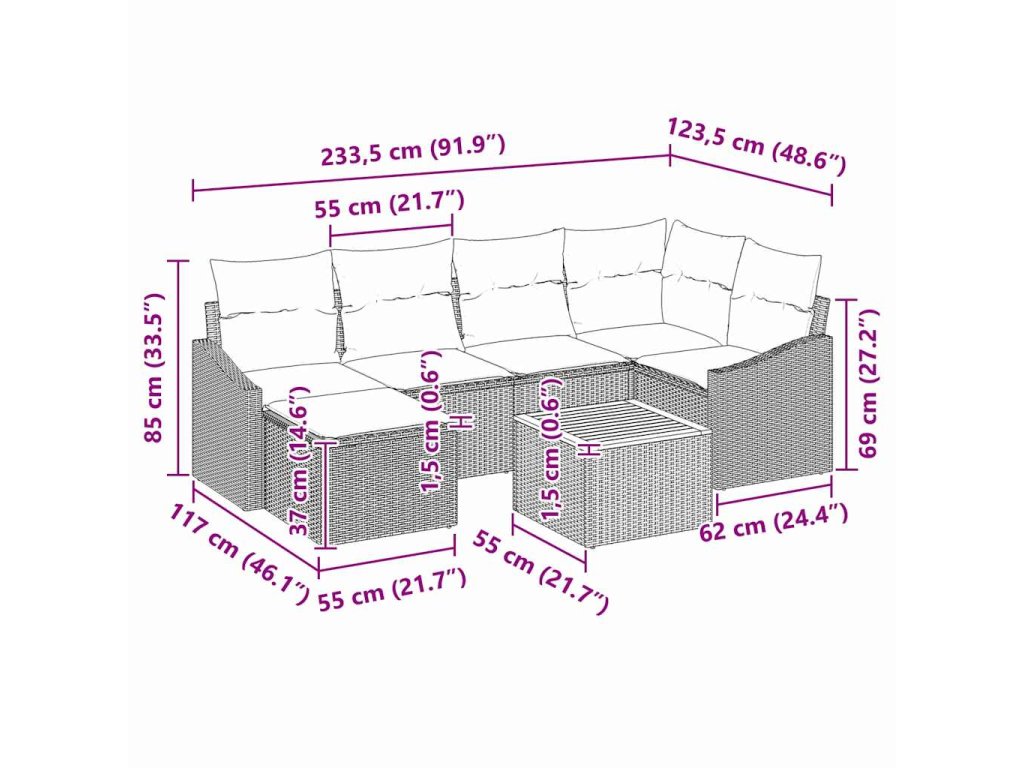 - Údržba a péče Snadná údržba s jednoduchými pokyny pro péči, včetně použití vlhkého hadříku k čištění a ukládání polštářů dovnitř během nepříznivého počasí. Využijte ochranný obal k ochraně nábytku, když není aktivně používán, což zajistí, že set zůstane v průběhu času v pořádku.