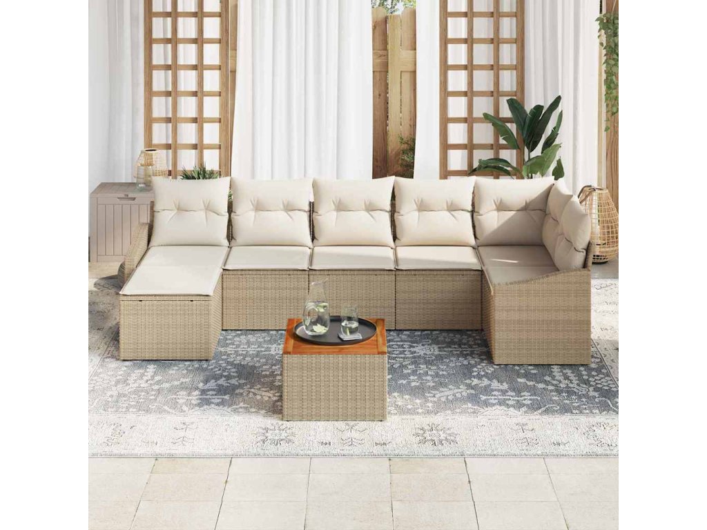 - Kompletní komponenty Tento set obsahuje různé možnosti sezení, od středových a rohových kusů po konfigurace s opěradly. Doplněný o podnožku pro zvýšené pohodlí a zahradní stůl, tyto komponenty vytvářejí plně funkční a stylový venkovní prostor pro setkání.