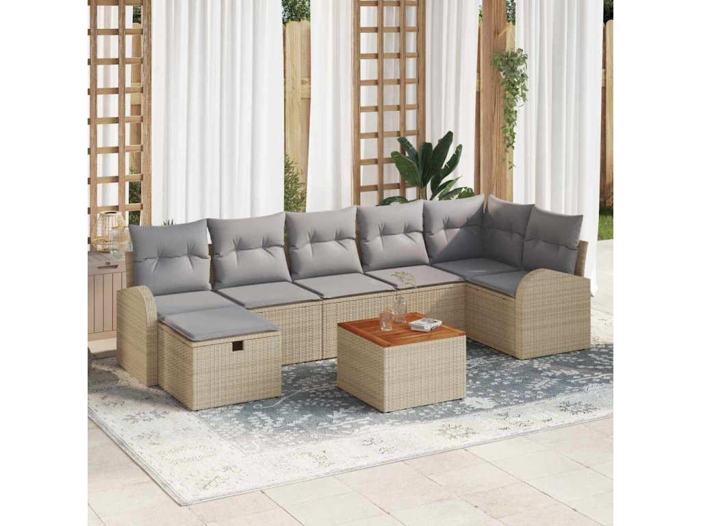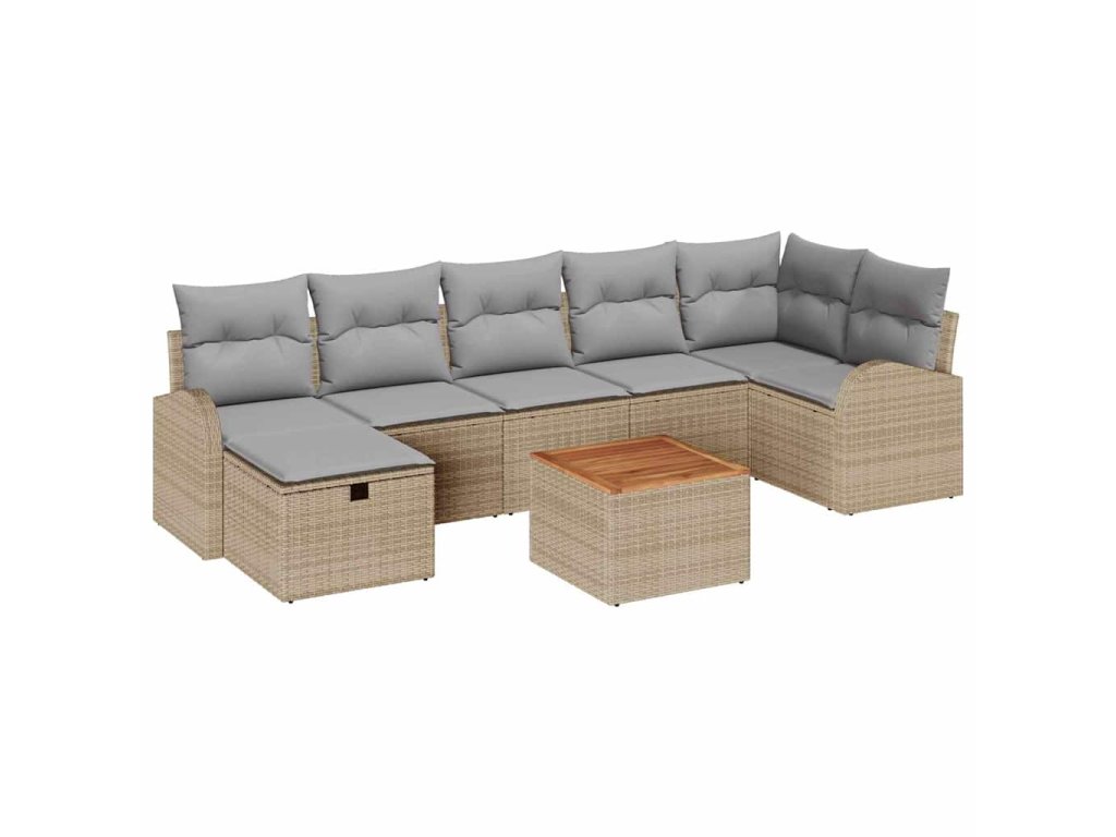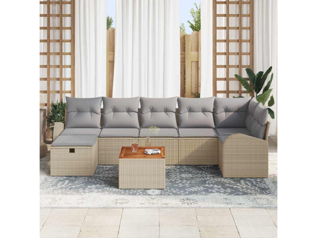 - Kompletní sada komponentů: Tahle sada zahrnuje dva armsofy, tři středové sedačky, jedno rohové křeslo, podnožku a zahradní stolek, takže máte spoustu prostoru na úložné věci. Polštáře, deky i zahradní nářadí schováte snadno a diskrétně.