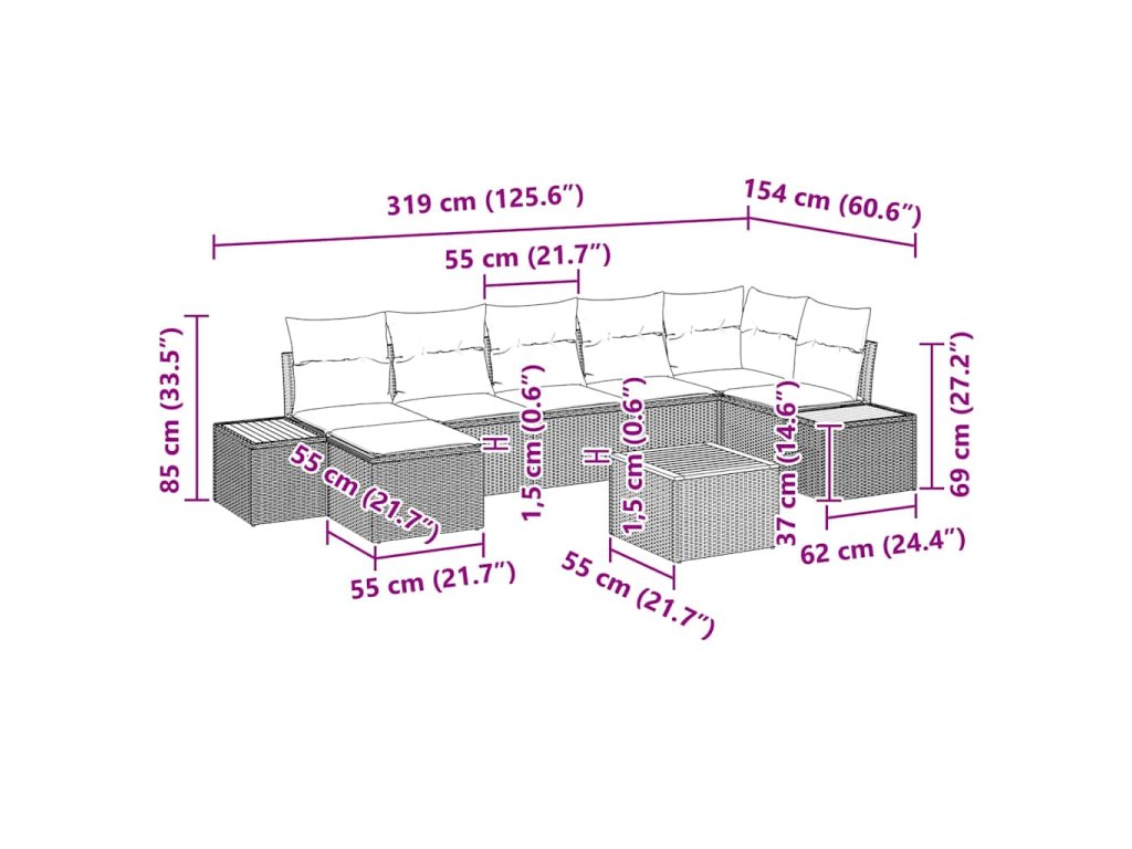 - Modulární a nastavitelné: Díky modulárnímu designu lze tuto zahradní pohovkovou sadu snadno přizpůsobit různým prostorům a konfiguracím podle vašich estetických preferencí nebo potřeby. Manuální nastavování umožňuje flexibilní přeconfigurování.