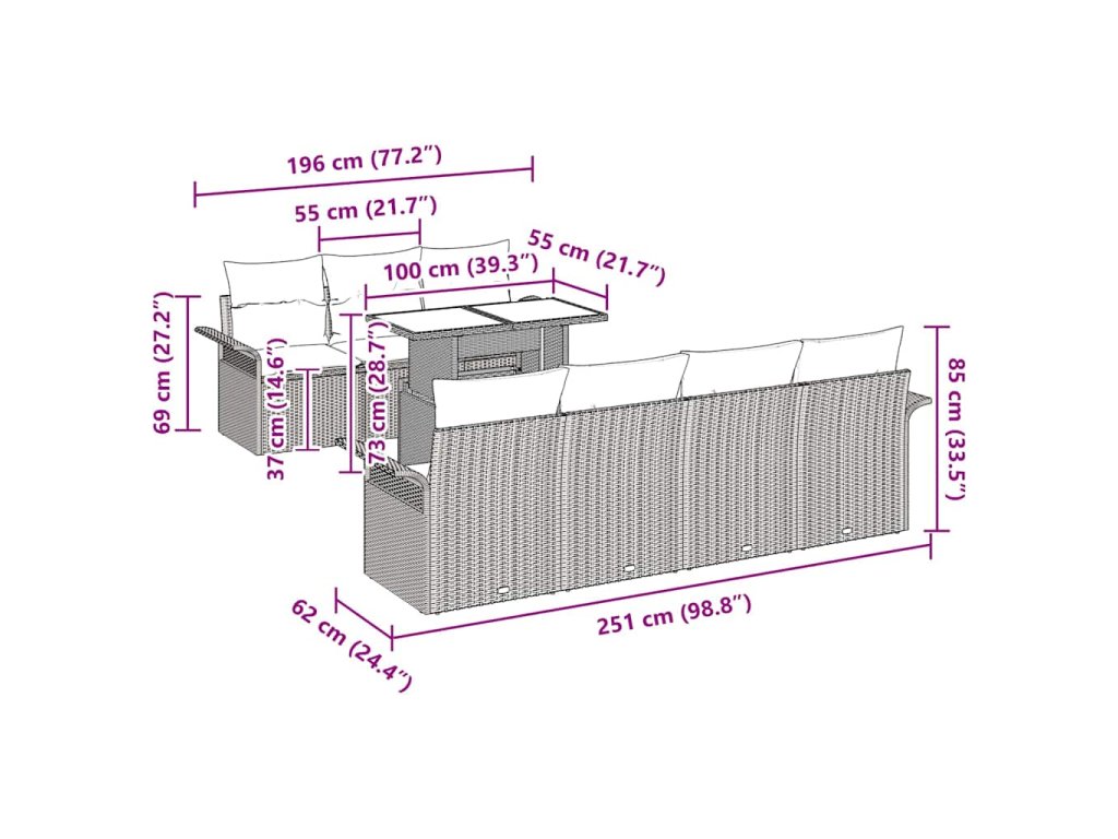 Tenhle 8dílný zahradní gaučový set ti zpříjemní venkovní relaxaci díky prostornému uspořádání a modernímu stylu. Je vyrobený z odolných materiálů a představuje dokonalou kombinaci vzhledu a funkčnosti pro balkony, patia nebo zahrady.