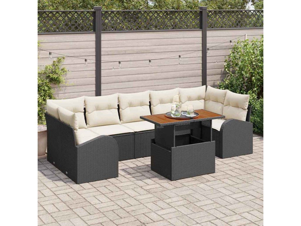 Tento 8-dílný zahradní set je o tom, jak posunout venkovní posezení na vyšší úroveň s komfortním sezením a moderním stylem. Modulární design ti umožní si ho poskládat tak, jak chceš, a má spoustu místa pro až sedm lidí. Perfektní na setkání, grilování nebo jen tak na lenošení venku.