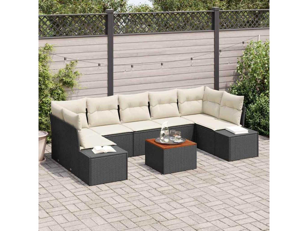 - Stylová estetika: Vyrobeno z černého polyratanu s měkkými krémovými polštáři, tahle sada dodává moderní vzhled tvé zahradě, terase nebo balkonu.