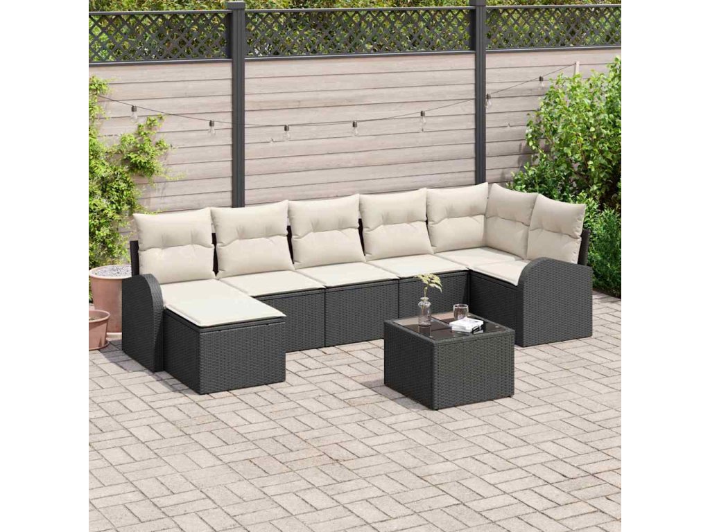 Tato modulární venkovní pohovka pro 7 lidí je perfektní doplněk každé zahrady nebo terasy. Kombinuje moderní styl s praktickým použitím. Poly ratanový exteriér má pěkné tkané detaily, které jí dodávají cool vzhled. Je navržená na venkovní použití, skvěle se hodí na společenské akce i na klidné lenošení. Sada obsahuje různé moduly, které si můžeš uspořádat podle sebe na různé příležitosti.