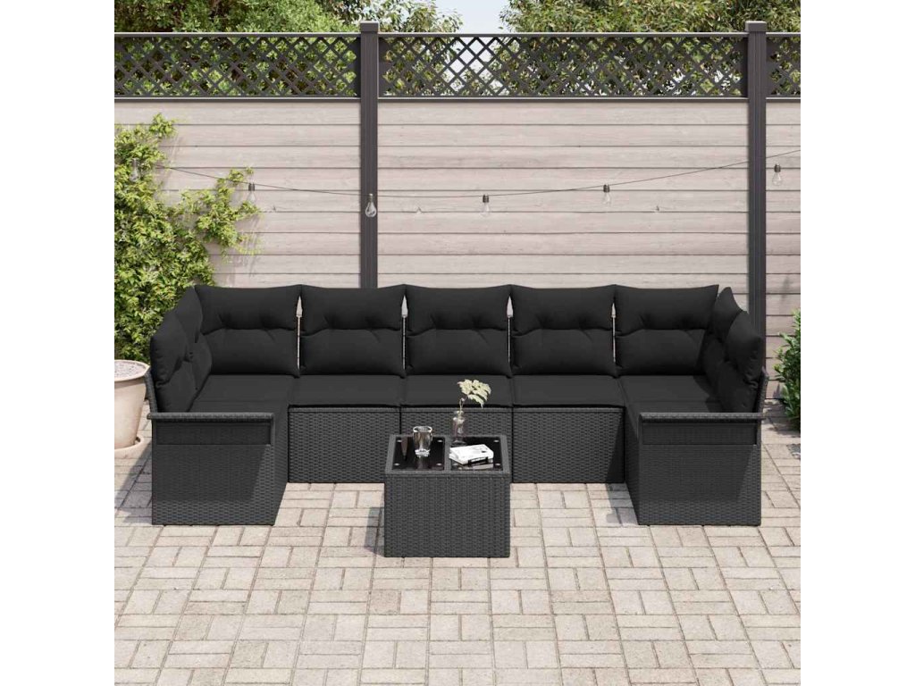 Udělej svůj venkovní prostor extra stylovým s touto 8dílnou zahradní pohovkovou soupravou. Má elegantní černý poly ratan a pohodlné polštáře – ideální na lenošení nebo setkání s kamarády. Můžeš jednotlivé kusy různě kombinovat a přizpůsobovat je podle svého balkonu nebo terasy, což ti dává svobodu a šmrnc.