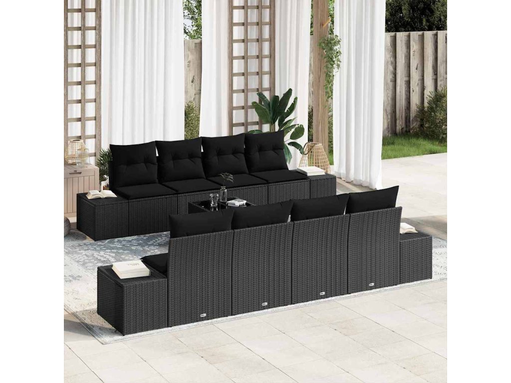 Tahle 7dílná zahradní pohovka je skvělou kombinací stylu a užitečnosti, a musíš ji mít na svých outdoorových schůzkách. Poskytuje místo pro 7 lidí a má elegantní černý syntetický ratanový rám s pohodlnými polštáři, takže je to ideální volba pro letní setkání nebo klidné večery venku.