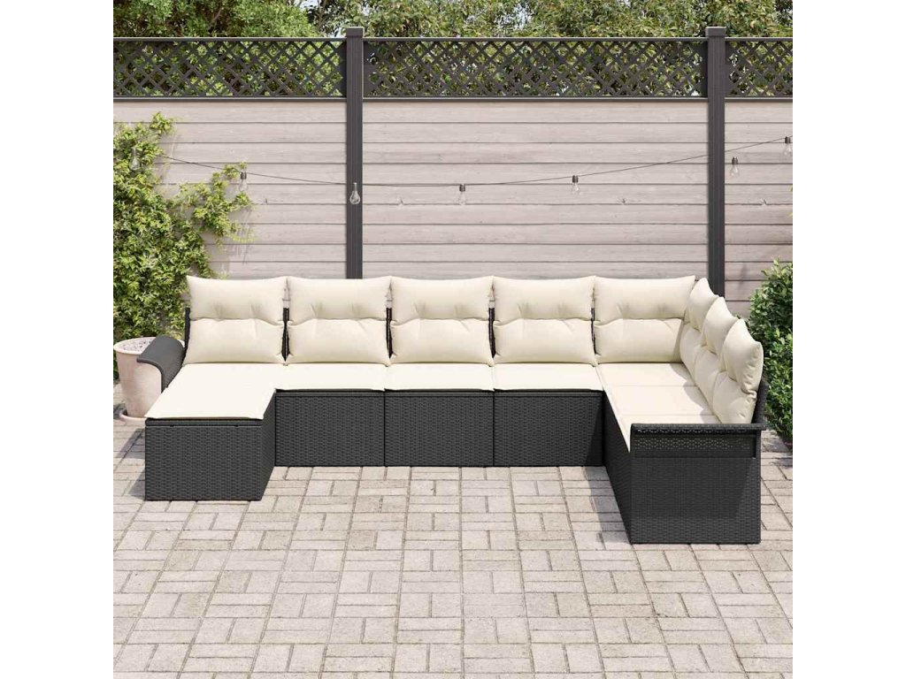 - Stylový vzhled: Moderní design se hodí k jakékoli venkovní dekoraci. Černý ratan a krémové polštáře vytvářejí pohodovou atmosféru pro relaxaci a setkávání.
